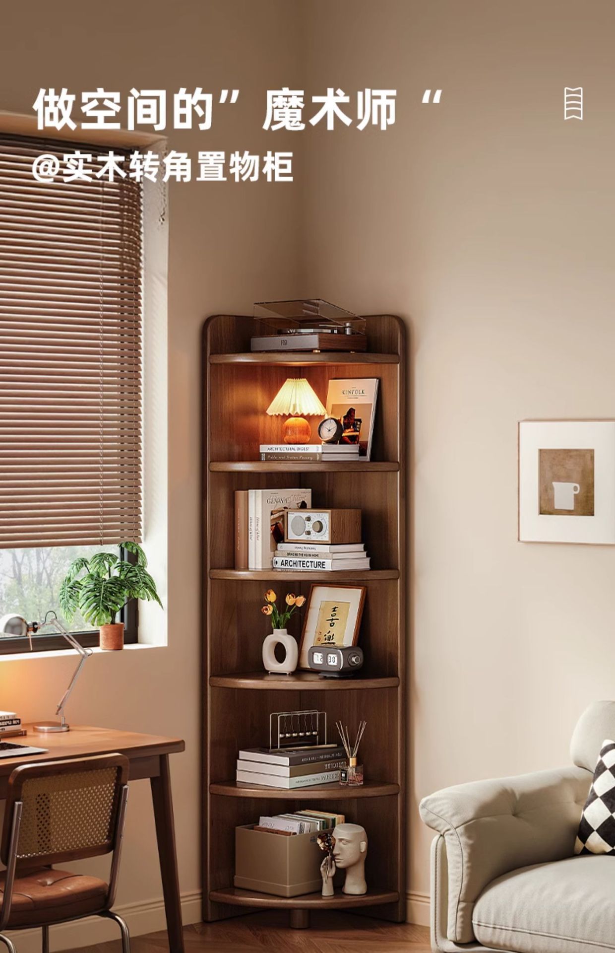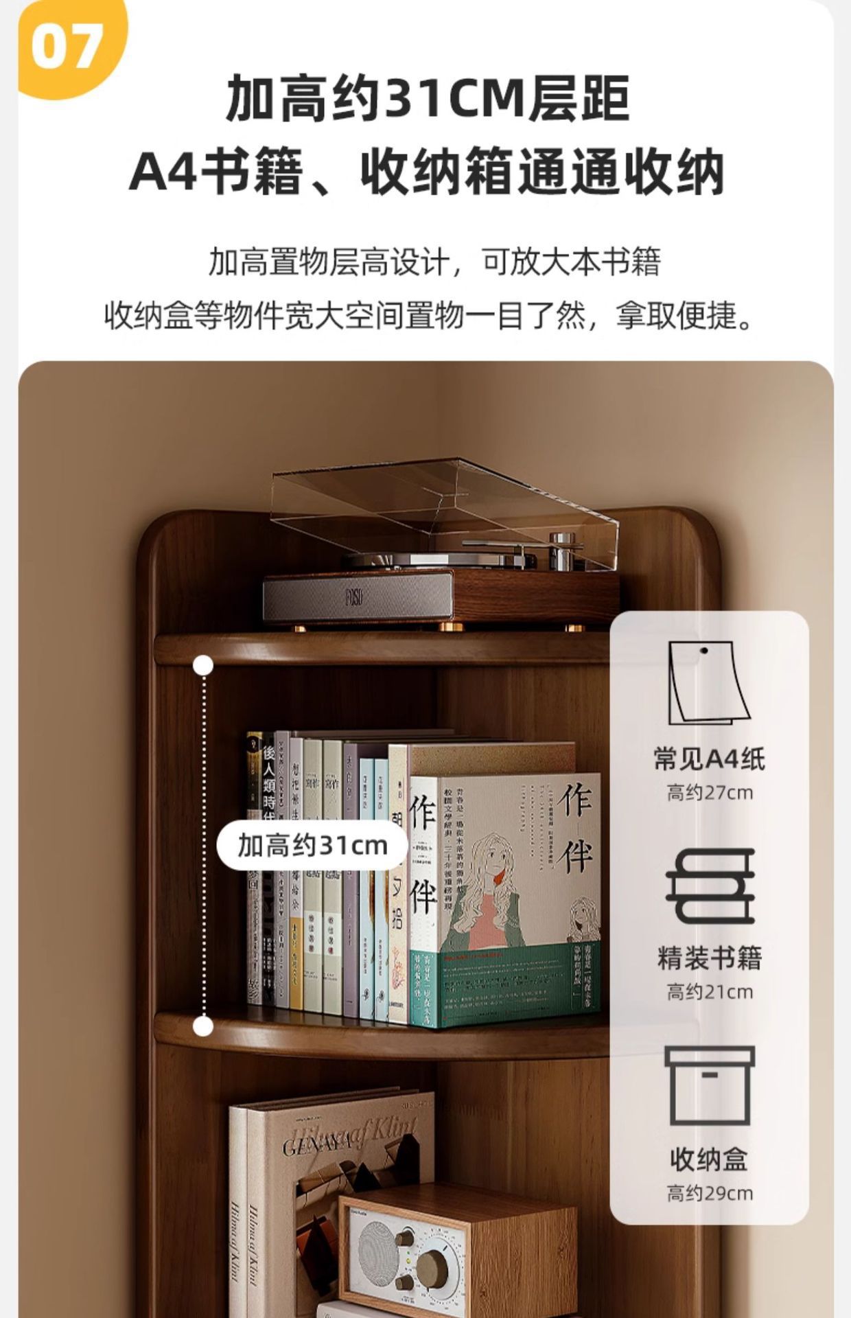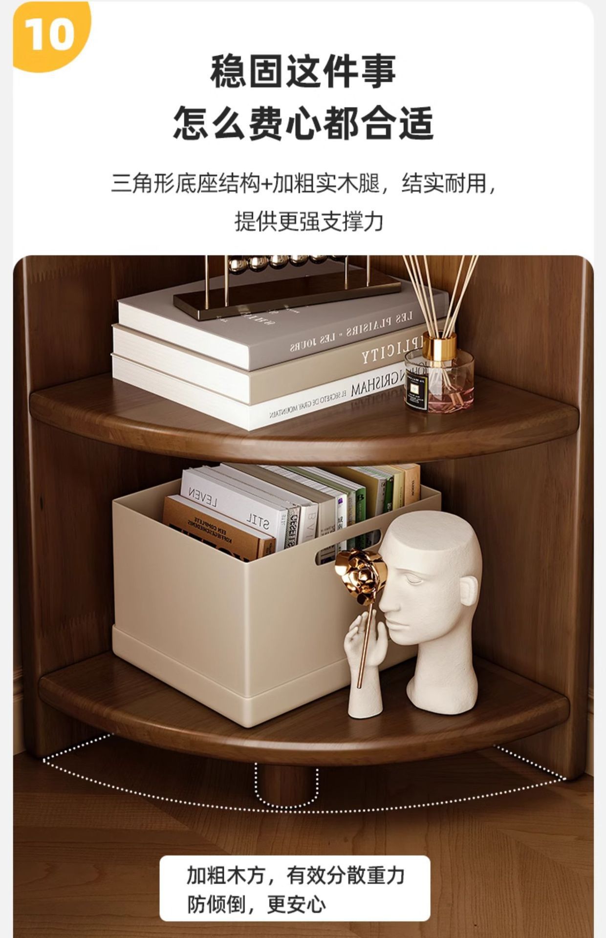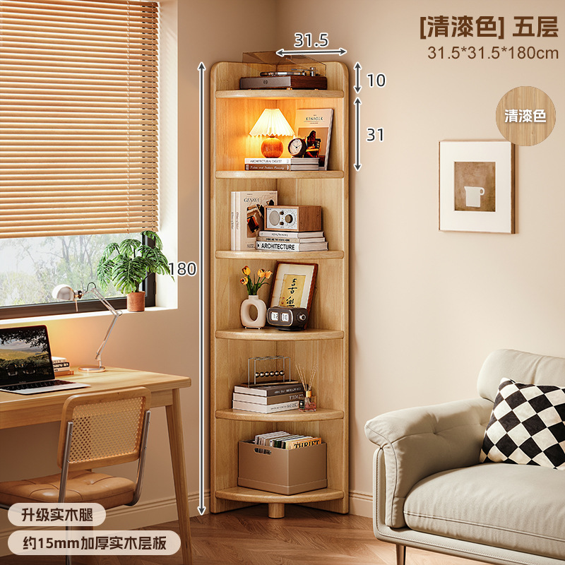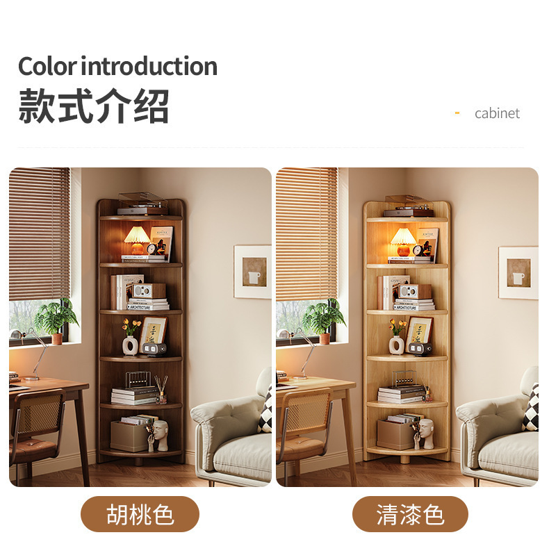 단단한 나무 코너 캐비닛 선반 벽 측면 삼각형 좁은 캐비닛 가정용 저장 캐비닛 팬 모양의 코너 책꽂이스토어 가기