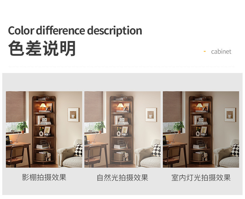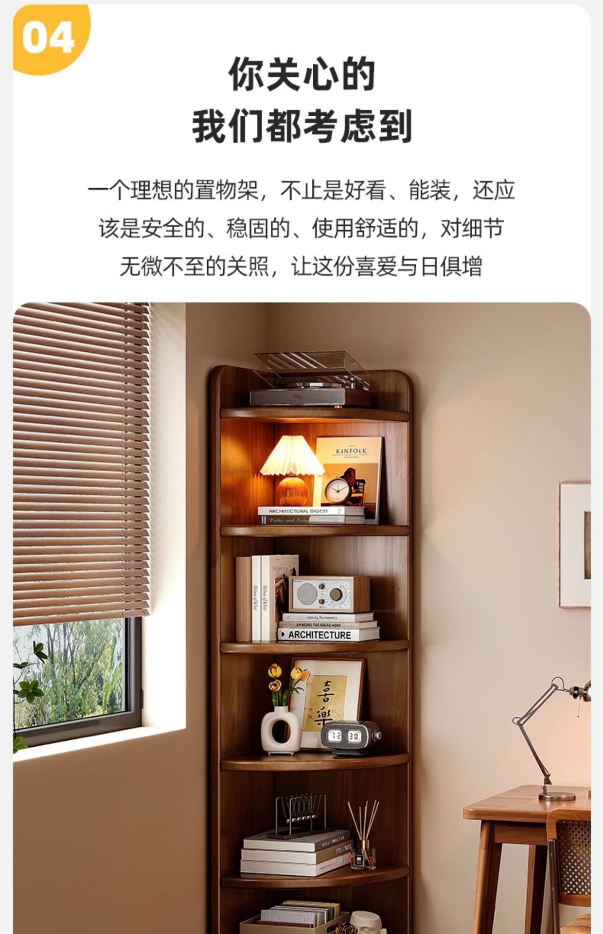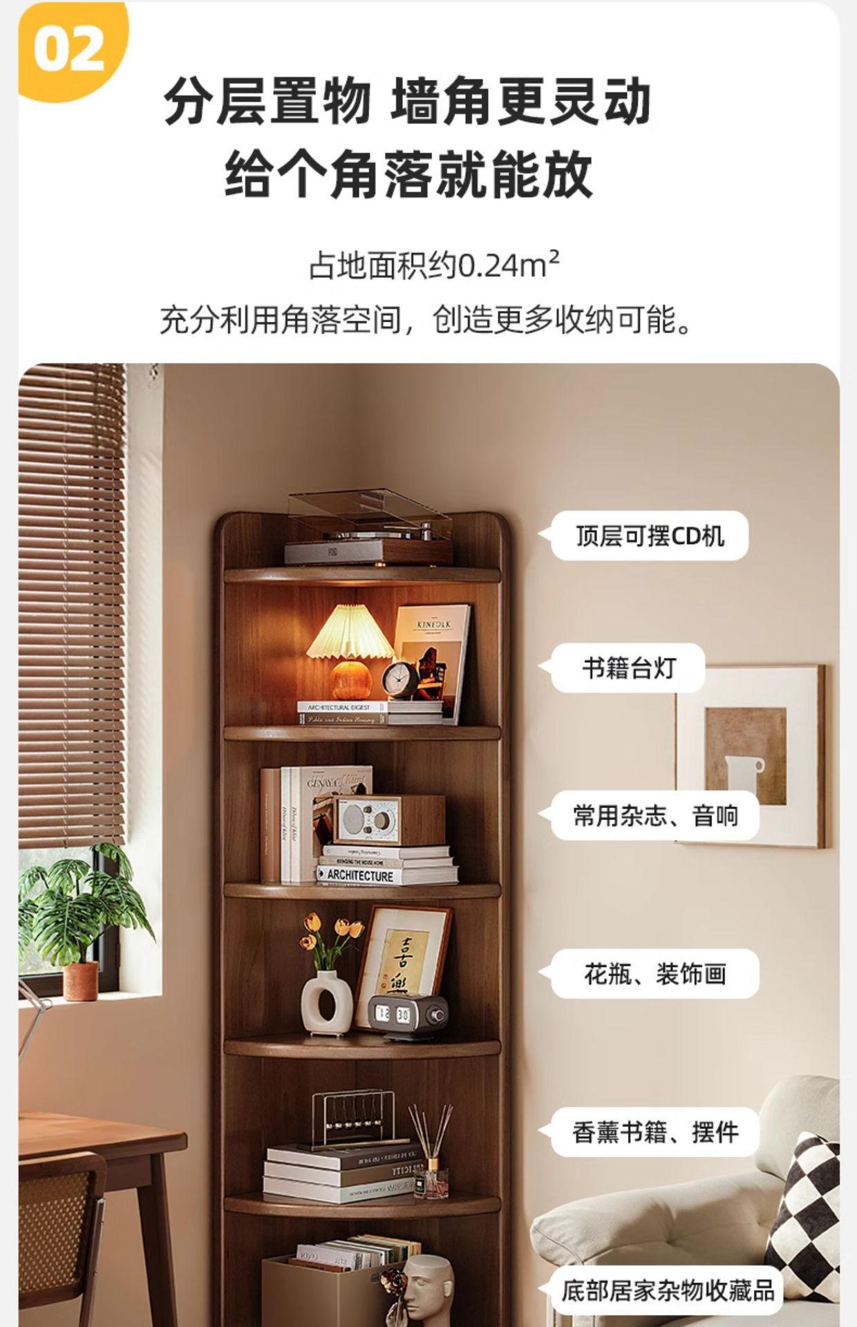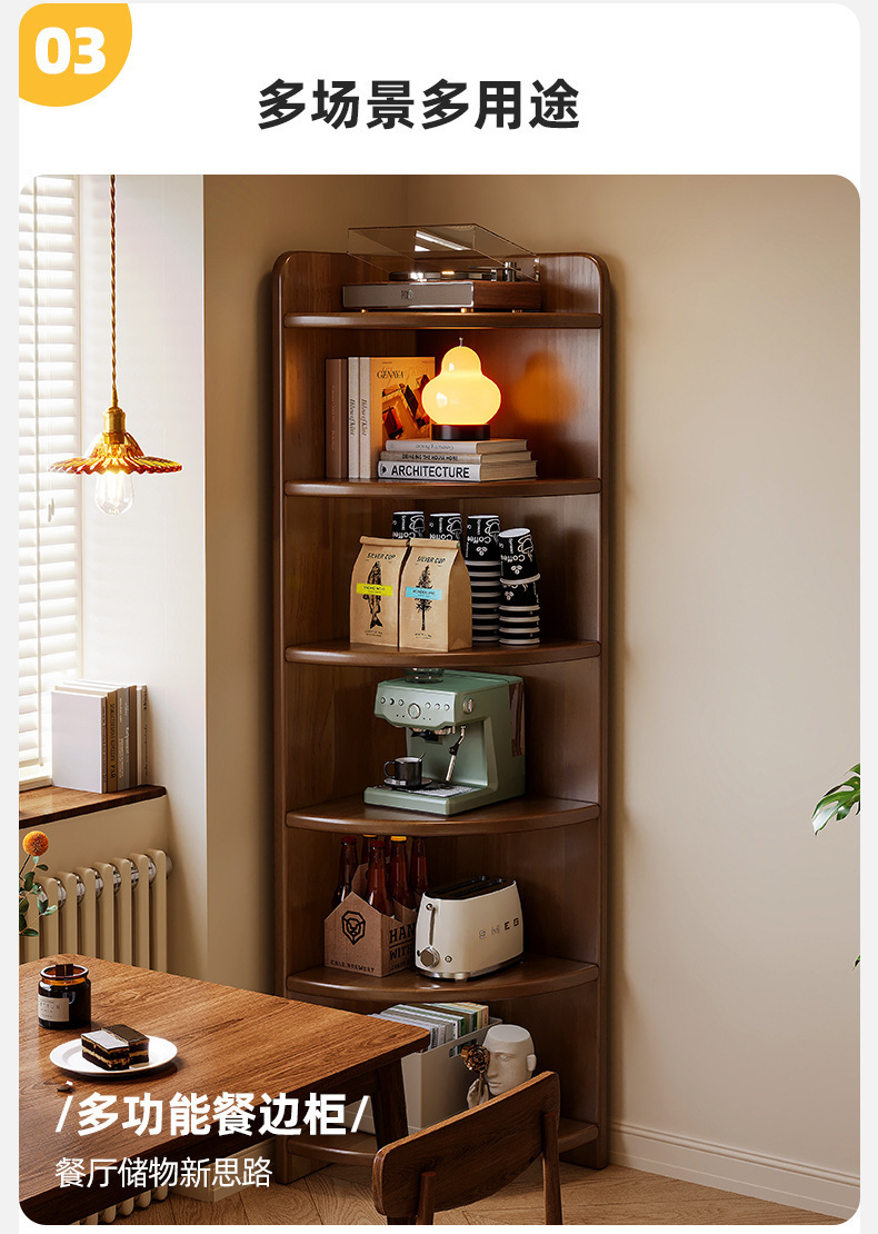 단단한 나무 코너 캐비닛 선반 벽 측면 삼각형 좁은 캐비닛 가정용 저장 캐비닛 팬 모양의 코너 책꽂이스토어 가기