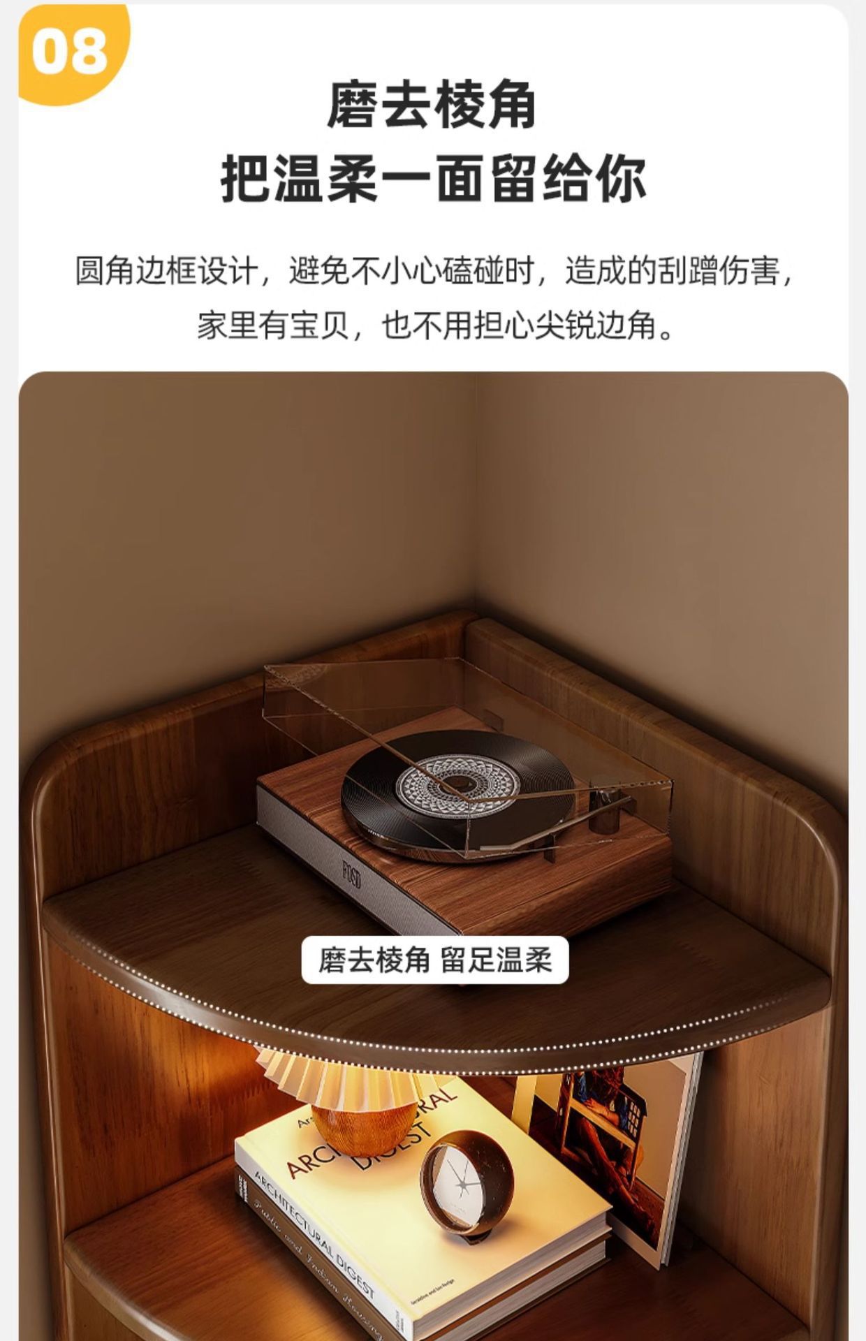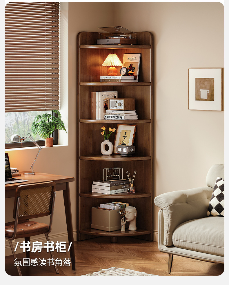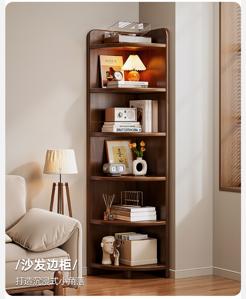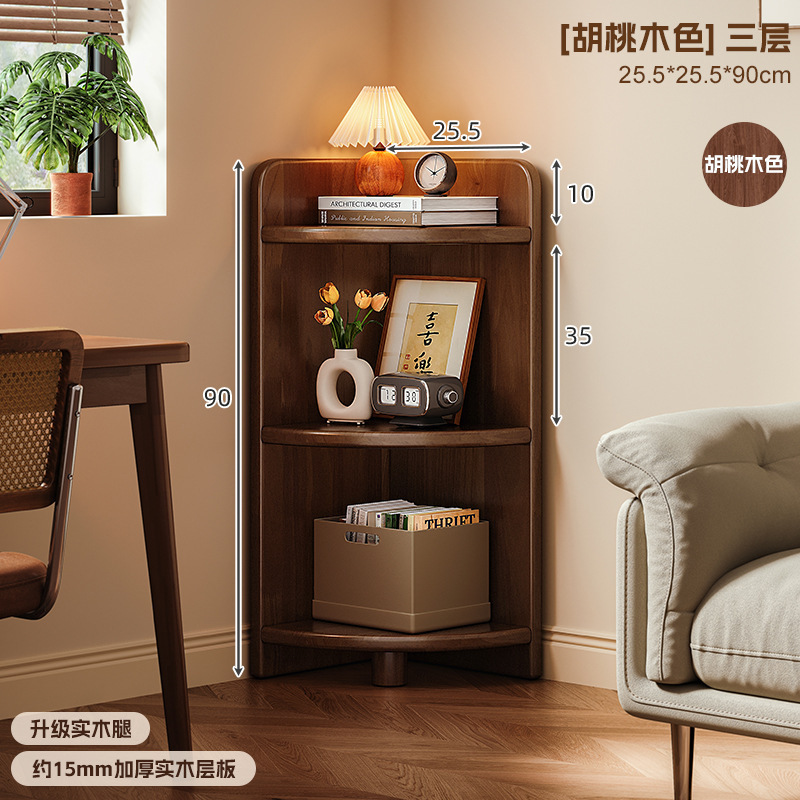 단단한 나무 코너 캐비닛 선반 벽 측면 삼각형 좁은 캐비닛 가정용 저장 캐비닛 팬 모양의 코너 책꽂이