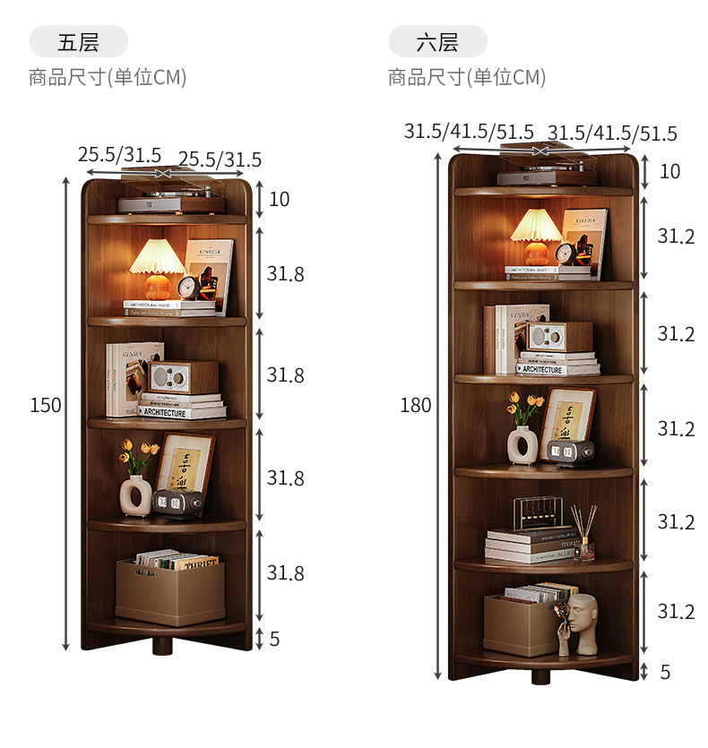 • 두꺼운 단단한 나무 [6층 모델] 31.5*31.5*180cm 단단한 나무 바니시