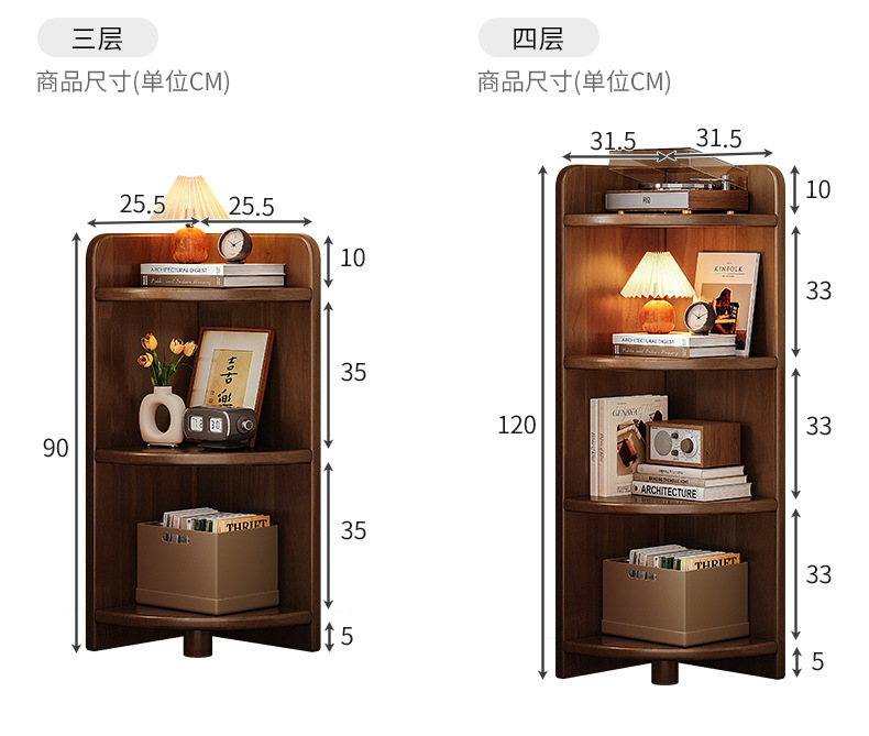 • 두꺼운 원목 [3층 모델] 25.5*25.5*90cm 호두 색상
