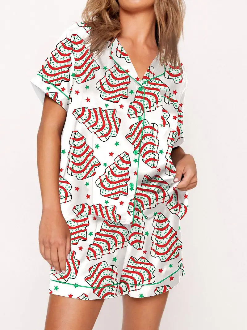 2025 국경 크리스마스 트리 인쇄 세트 여성 어린이 잠옷 플러스 사이즈 기질 가족 프로 POD 관습스토어 가기