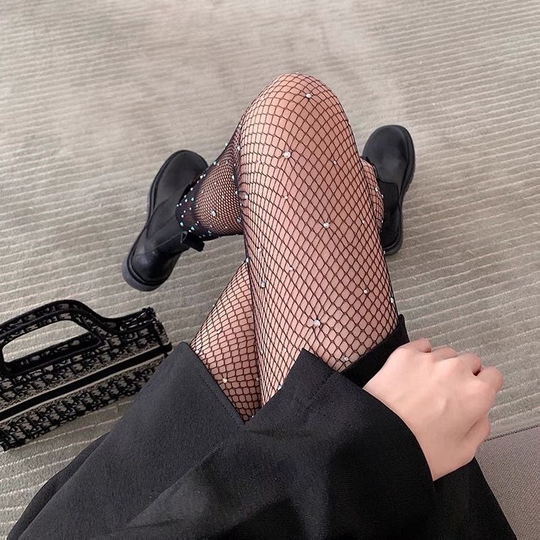검은색 얇은 스타킹 여성용 블랙 인스타그램 스타일 양말 인터넷 유명인 레터링 망사 양말 다이아몬드 장식 화이트 jk 팬티스타킹 섹시스토어 가기