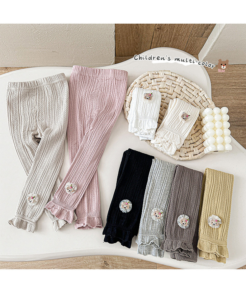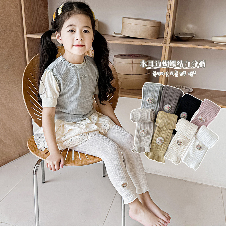 새로운 어린이 발목 길이 바지 면밀 귀 패턴 한국 스타일 타이트 바지 아기의 팬티 스타킹 봄과 가을 소녀 팬티 스타킹