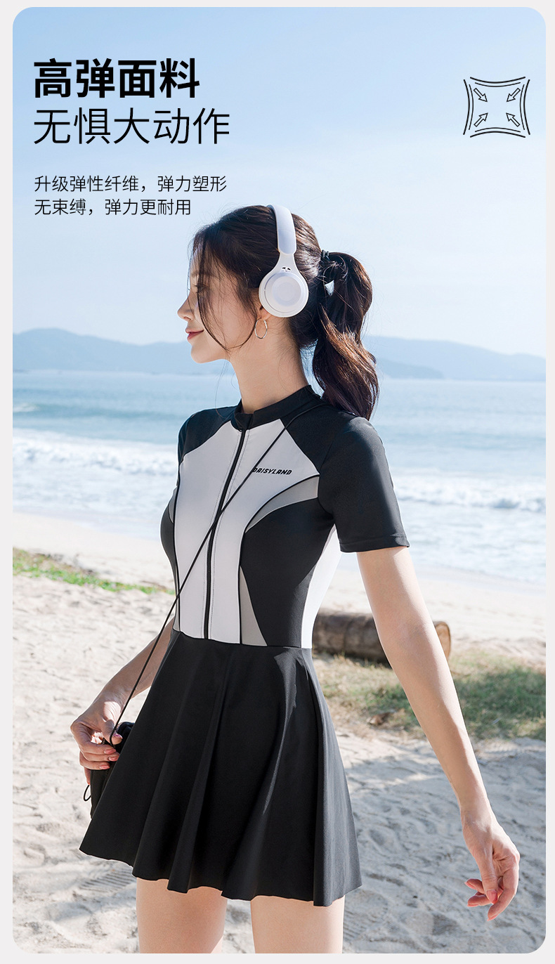 2025 새로운 도착 수영복 여성 스커트 한국 스타일 짧은 소매 슬리밍 귀여운 학생 수영복 슬리밍 수영복스토어 가기