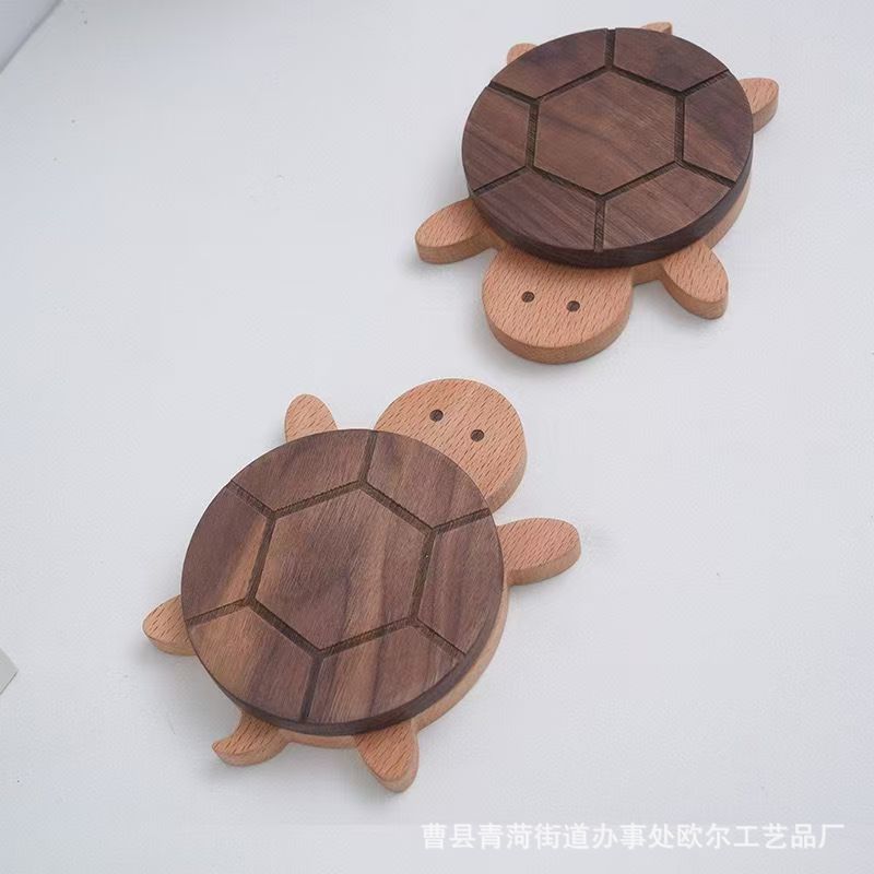 창조적 인 귀여운 나무 코스터 단단한 나무 거북 절연 매트 주전자 차 매트 식기 식기 안티-스케일링 테이블 장식품스토어 가기
