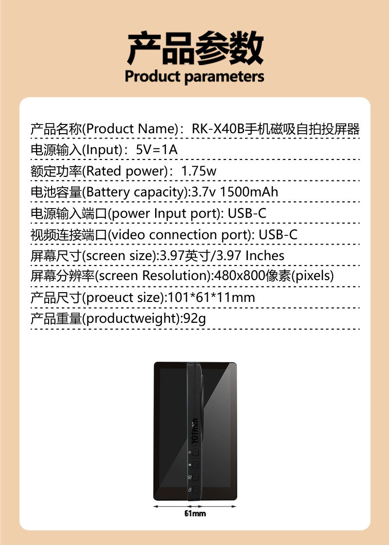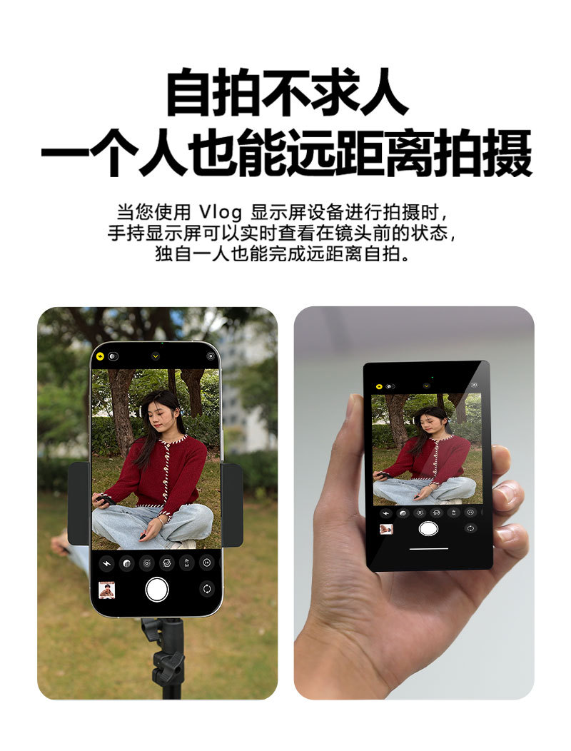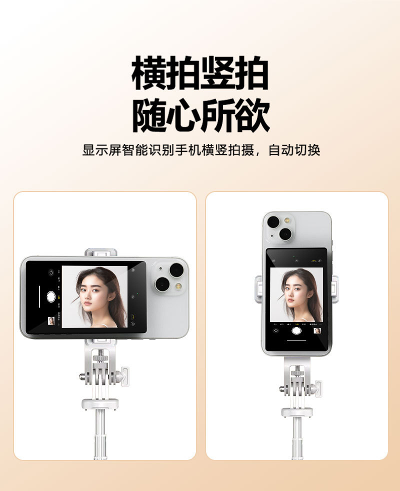 새로운 무선 휴대 전화 셀프 타이머 마그네틱 스크린 캐스터 휴대 전화 후면 라이브 분할 화면 모니터 야외 셀프 타이머 보조