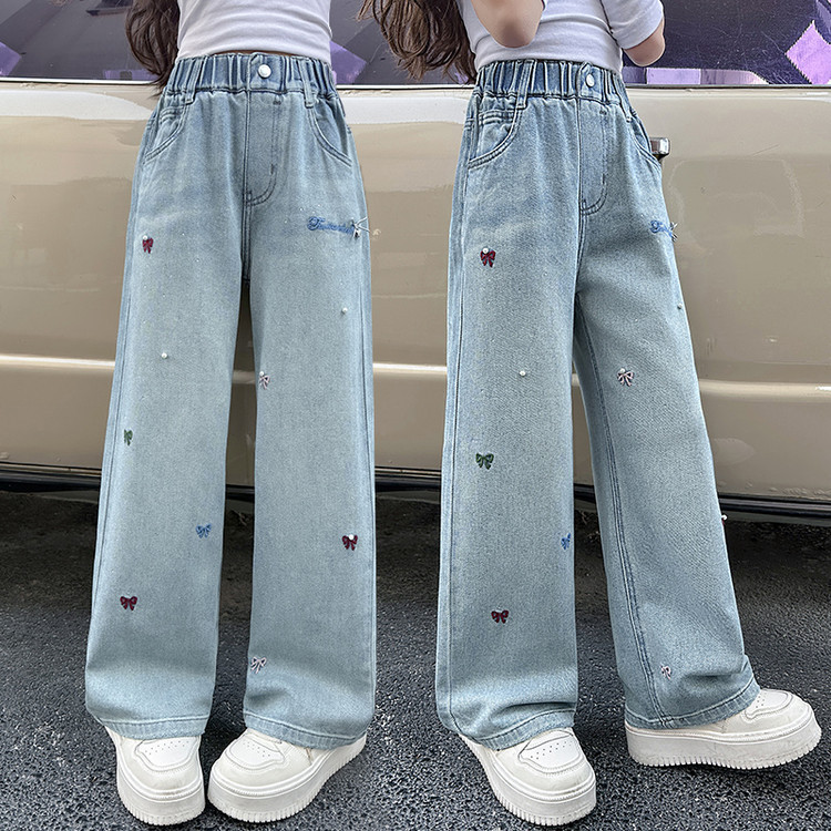 소녀 청바지 봄과 가을 2025 새로운 서양식 중 및 빅 키즈 느슨한 스트레이트 와이드 다리 바지 어린이 캐주얼 바지