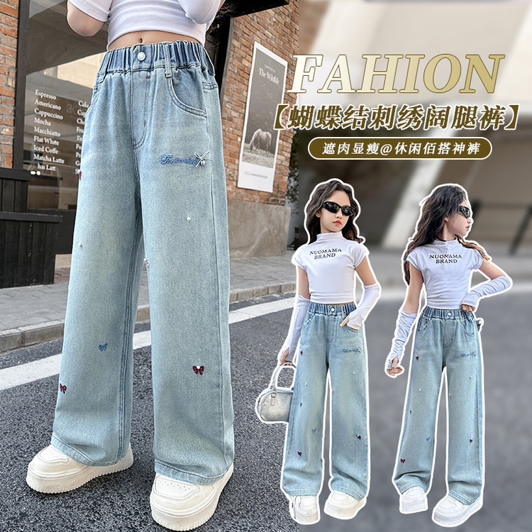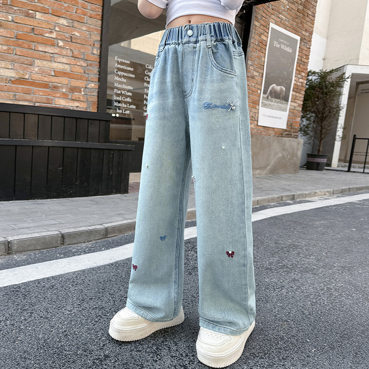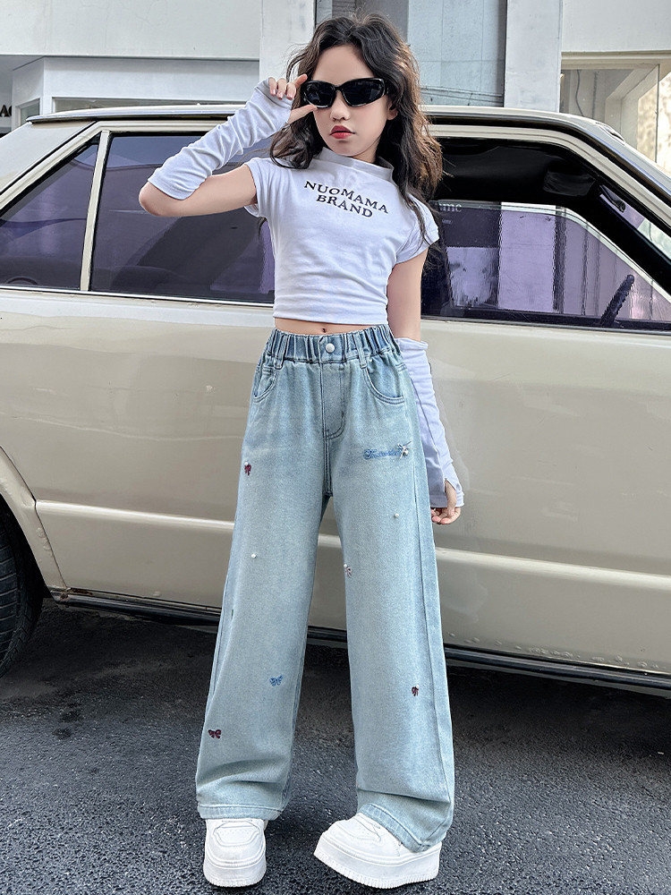 소녀 청바지 봄과 가을 2025 새로운 서양식 중 및 빅 키즈 느슨한 스트레이트 와이드 다리 바지 어린이 캐주얼 바지스토어 가기