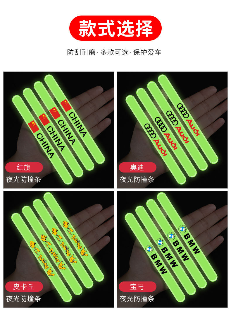 자동차 빛나는 안티 충돌 스트립 자동차 도어 안티 스크래치 스트립 반사 경고 스티커 바디 안티 충돌 도어 핸들 보호 스티커