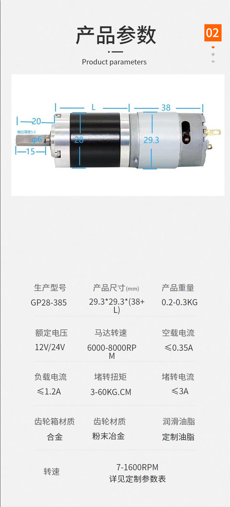 28mm 유성 기어 모터 GP28-385 마이크로 기어 모터