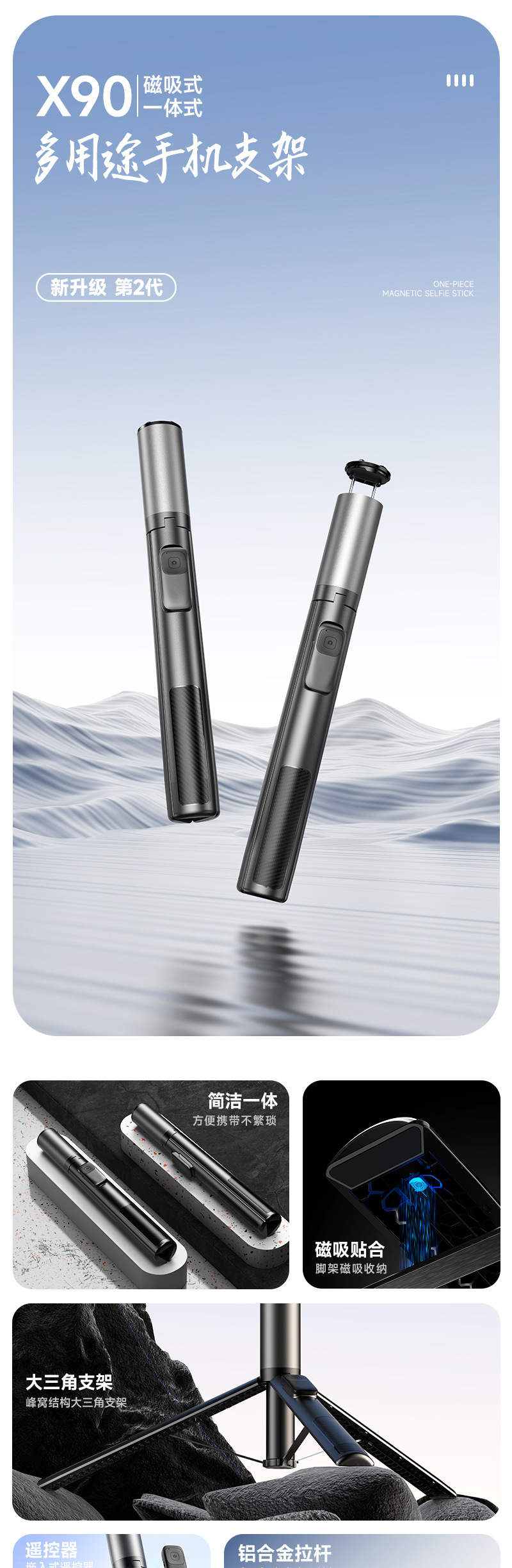 X90 자기 저장 발 통합 접는 저장 휴대 전화 브래킷 셀카 스틱 라이브 사진 블루투스 원격 제어