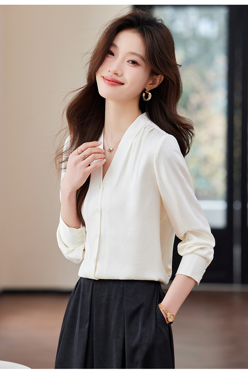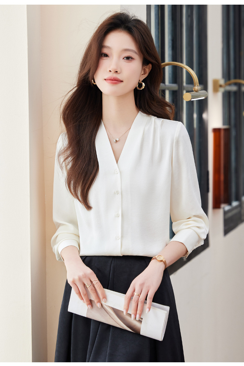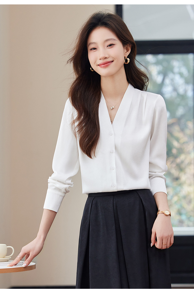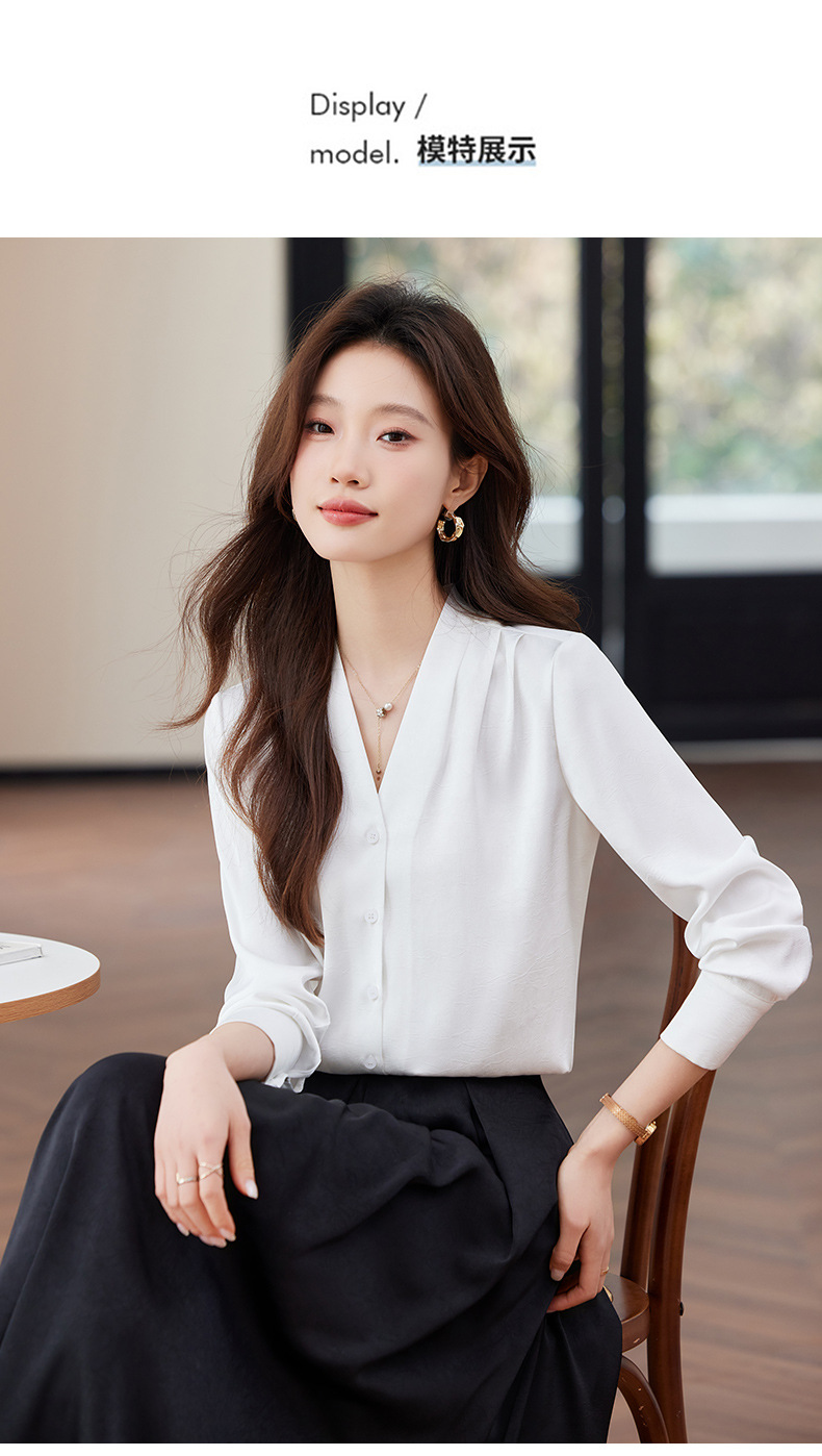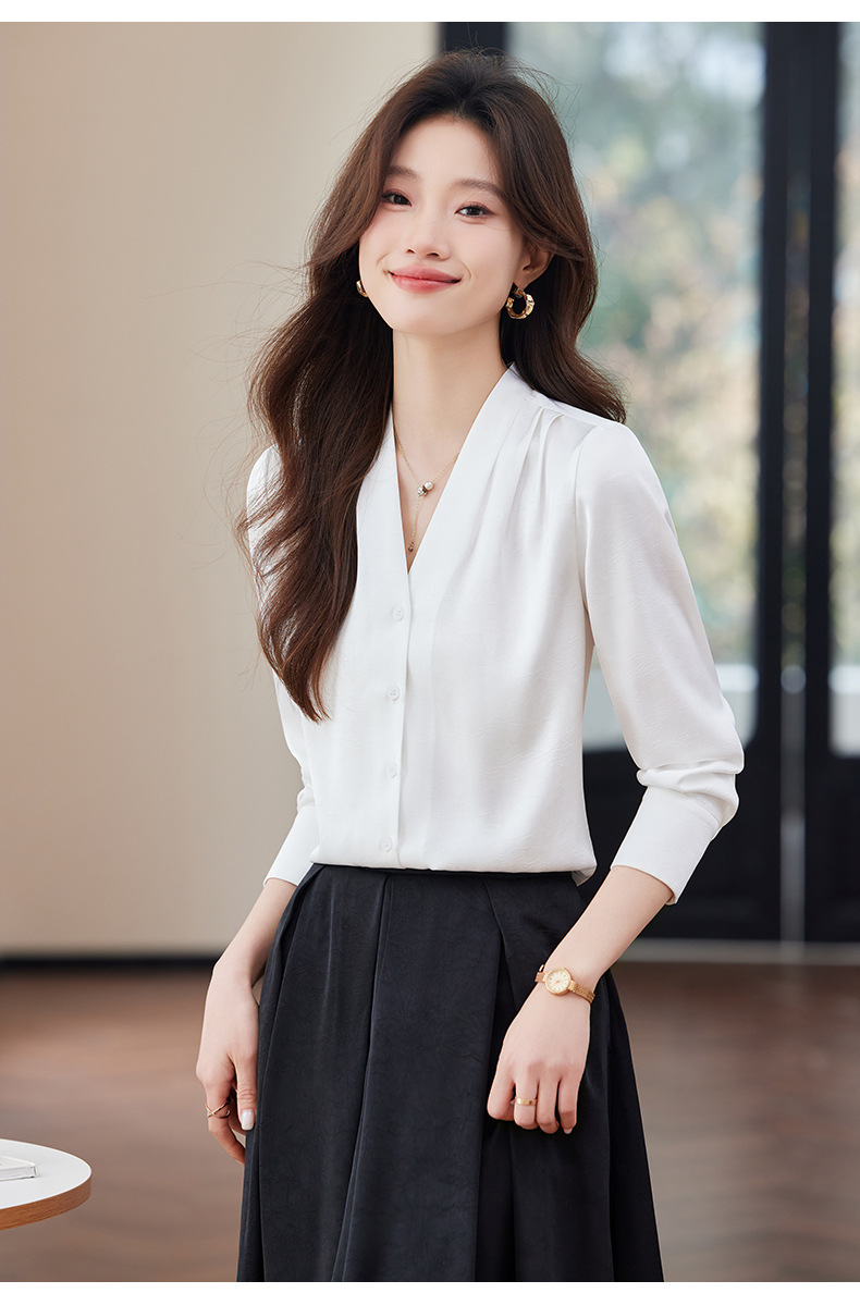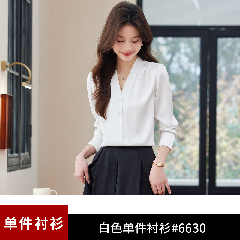 비즈니스 원피스 셔츠 가을 새로운 감각 긴 소매 V-넥 화이트 쉬폰 셔츠 여성 디자인 센스 니쉬 탑스토어 가기