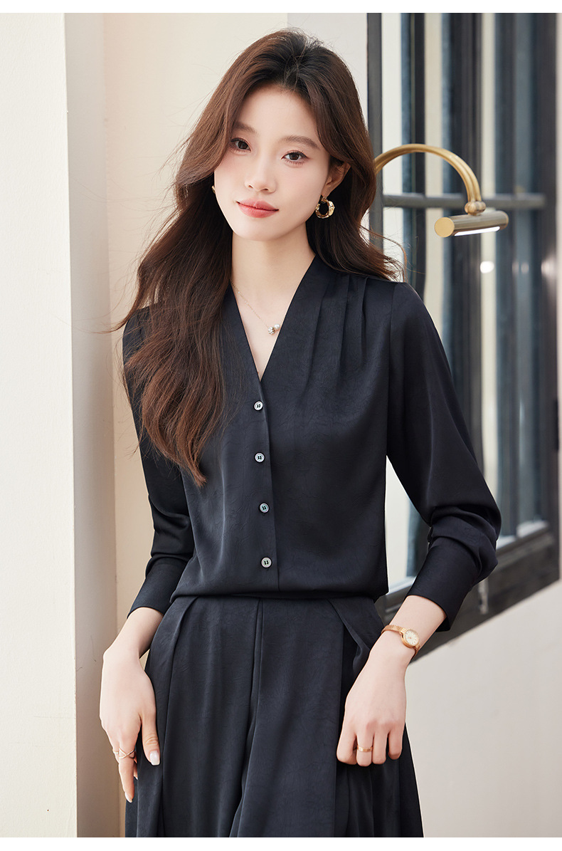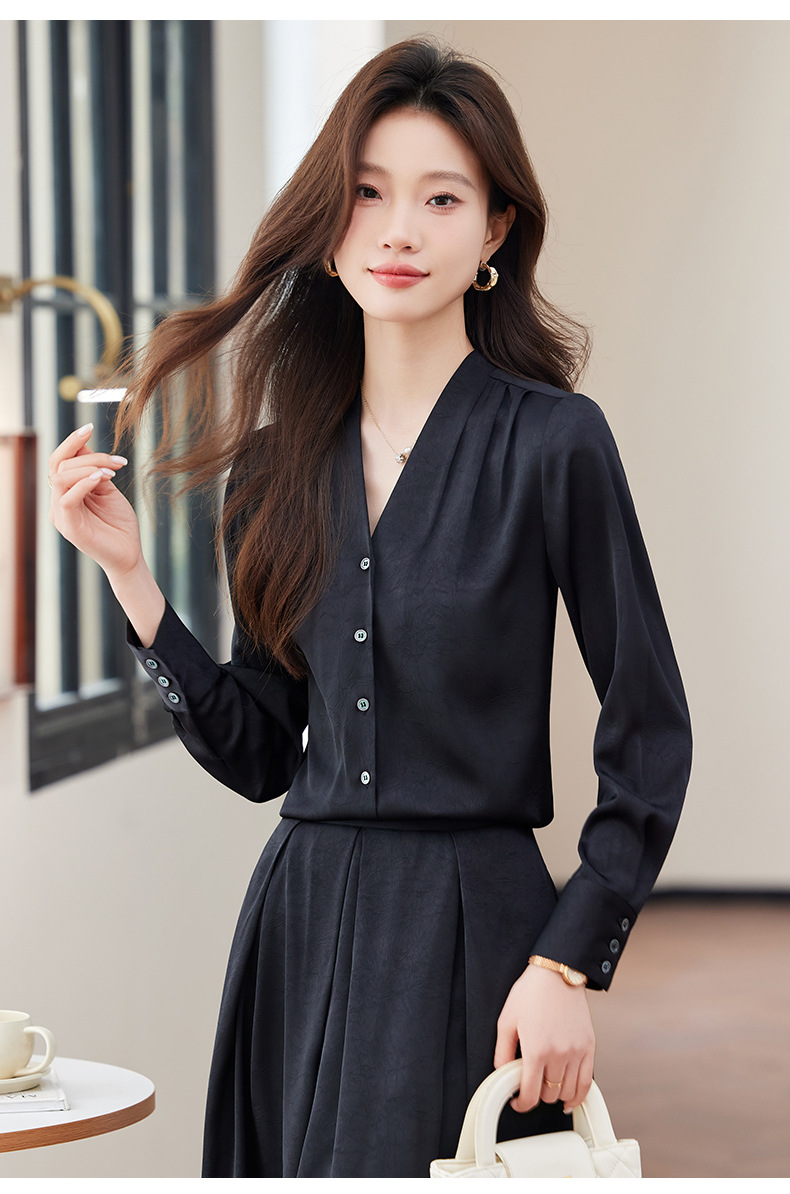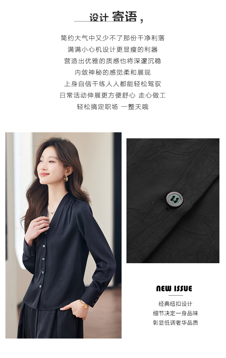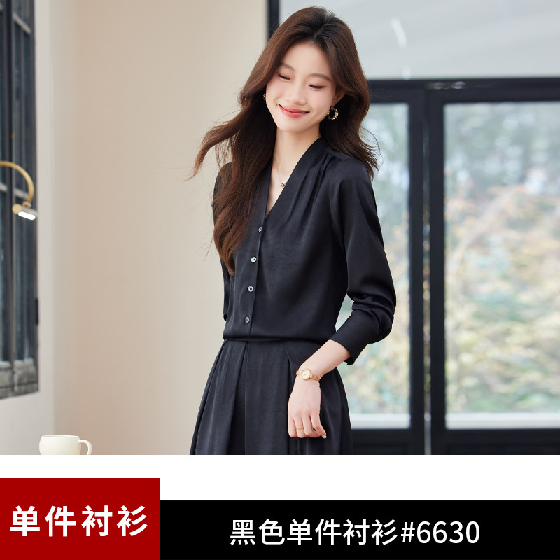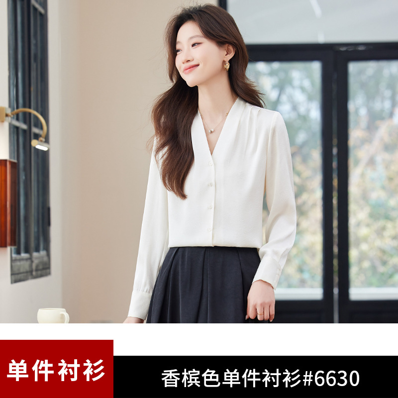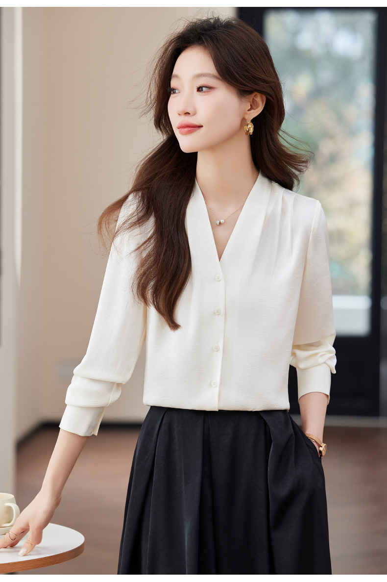 비즈니스 원피스 셔츠 가을 새로운 감각 긴 소매 V-넥 화이트 쉬폰 셔츠 여성 디자인 센스 니쉬 탑스토어 가기
