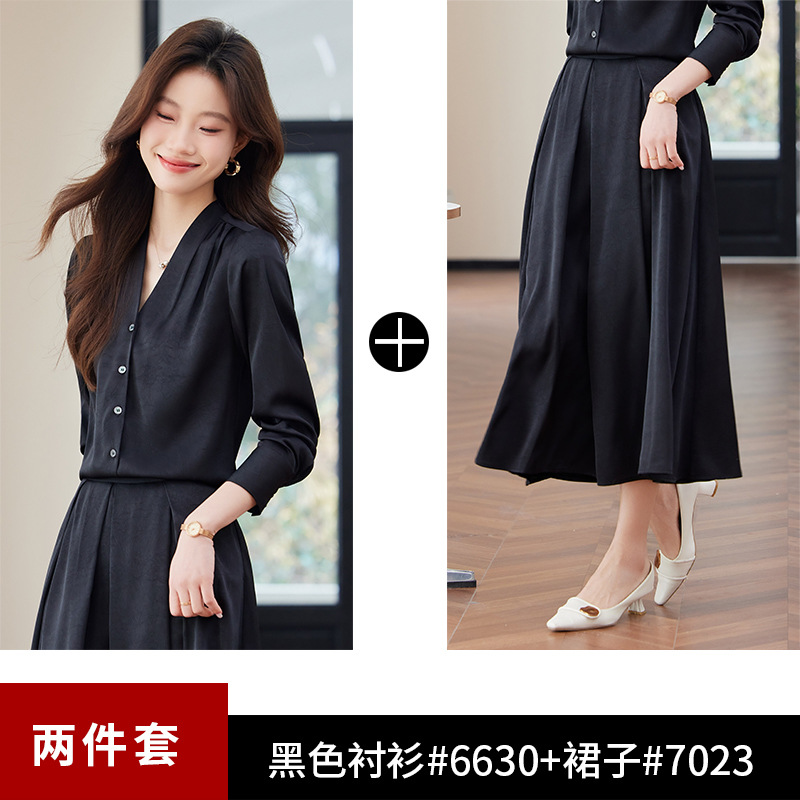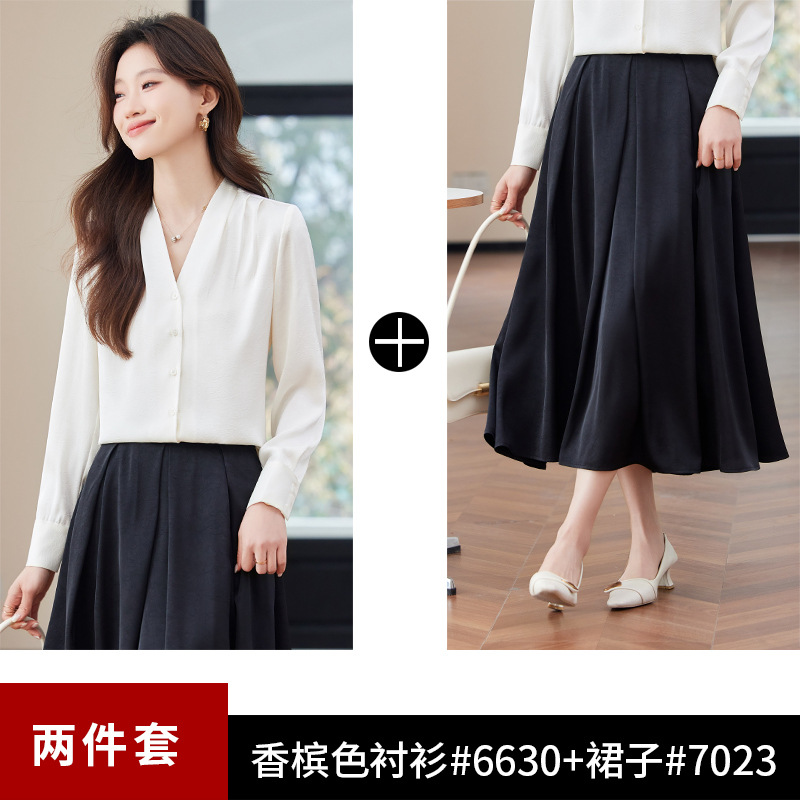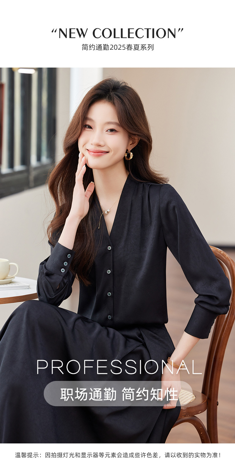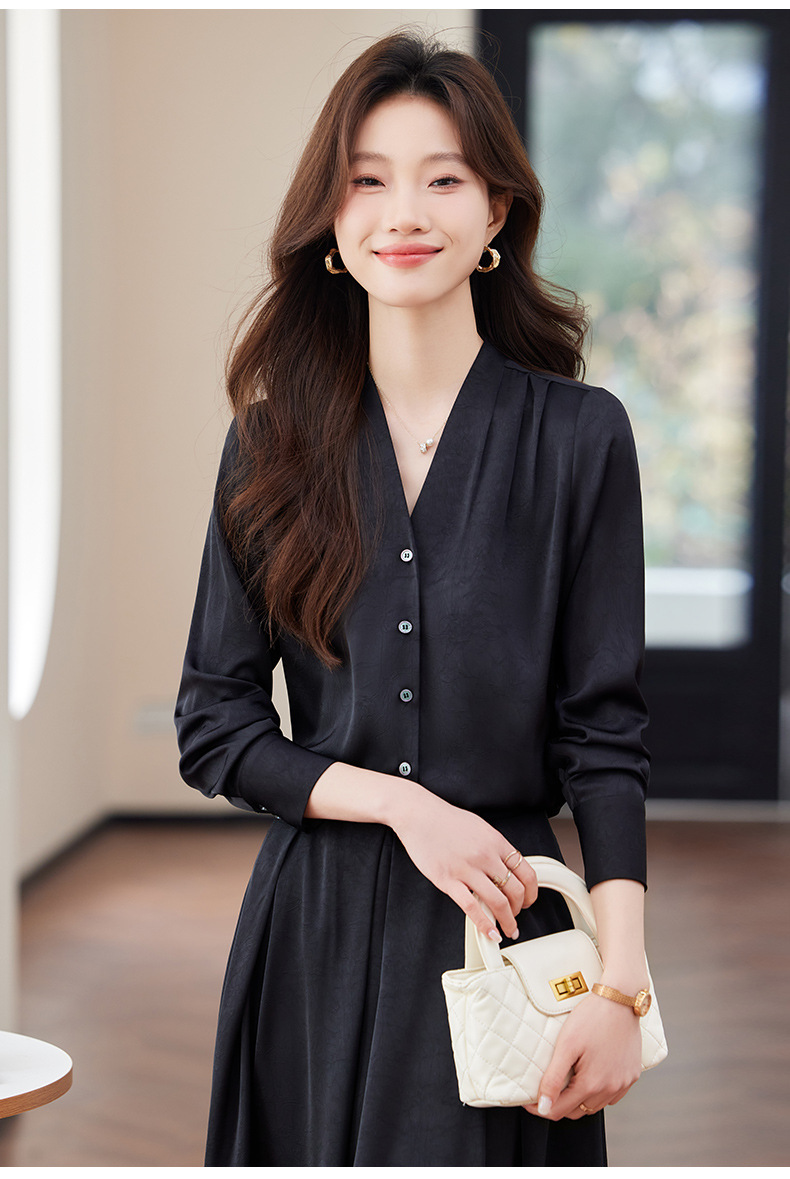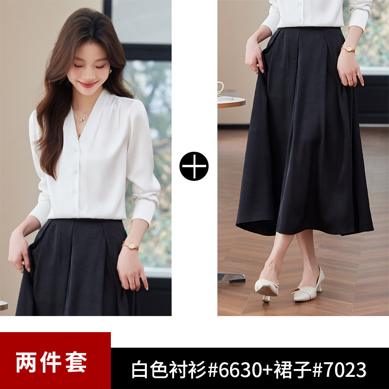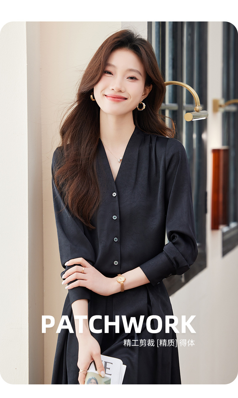 비즈니스 원피스 셔츠 가을 새로운 감각 긴 소매 V-넥 화이트 쉬폰 셔츠 여성 디자인 센스 니쉬 탑스토어 가기