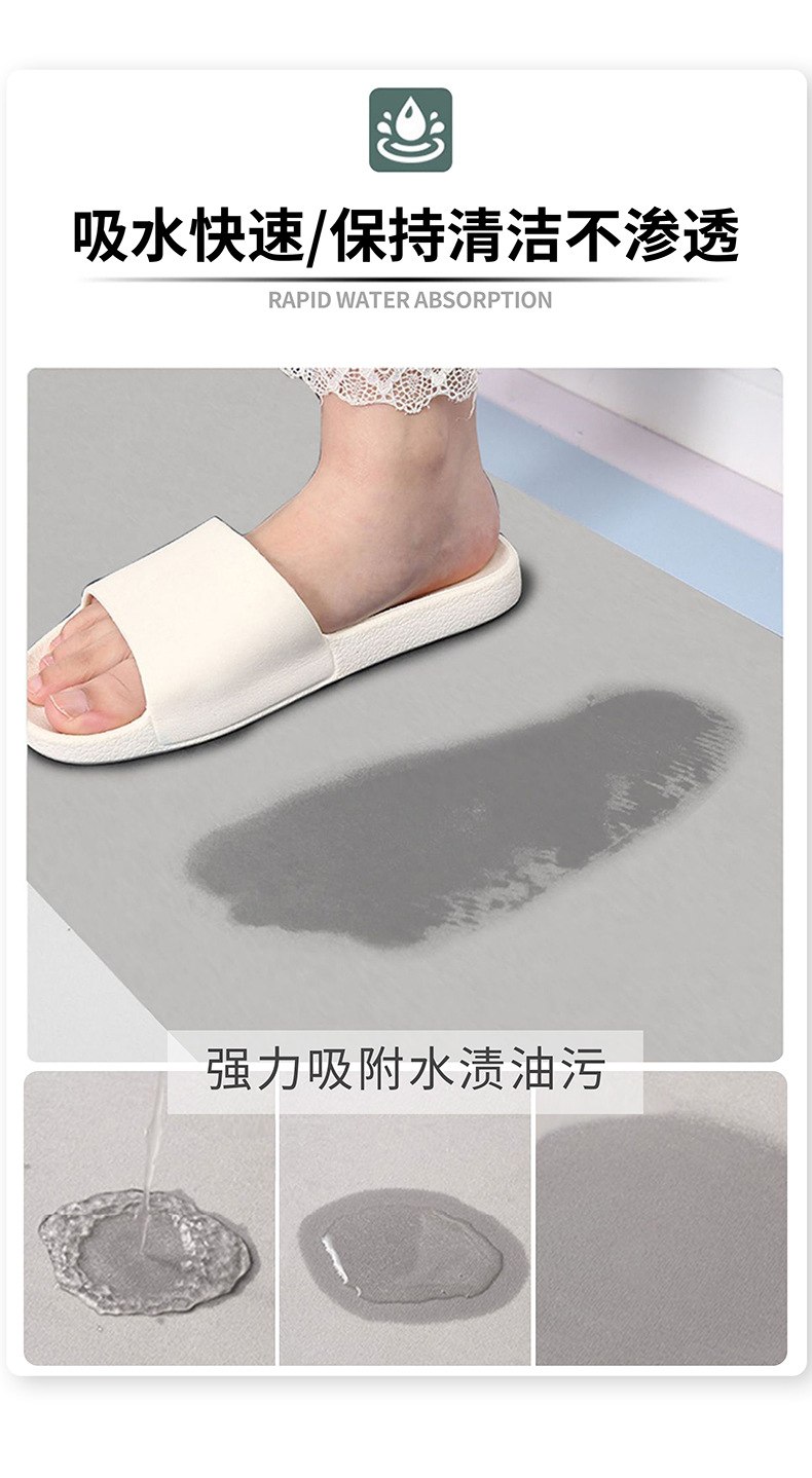 가벼운 고급 빈티지 주방 바닥 매트 가정용 Diatom 진흙 흡수성 비 슬립 발 매트 와이프 워시 프리 간편한 케어 롱 매트