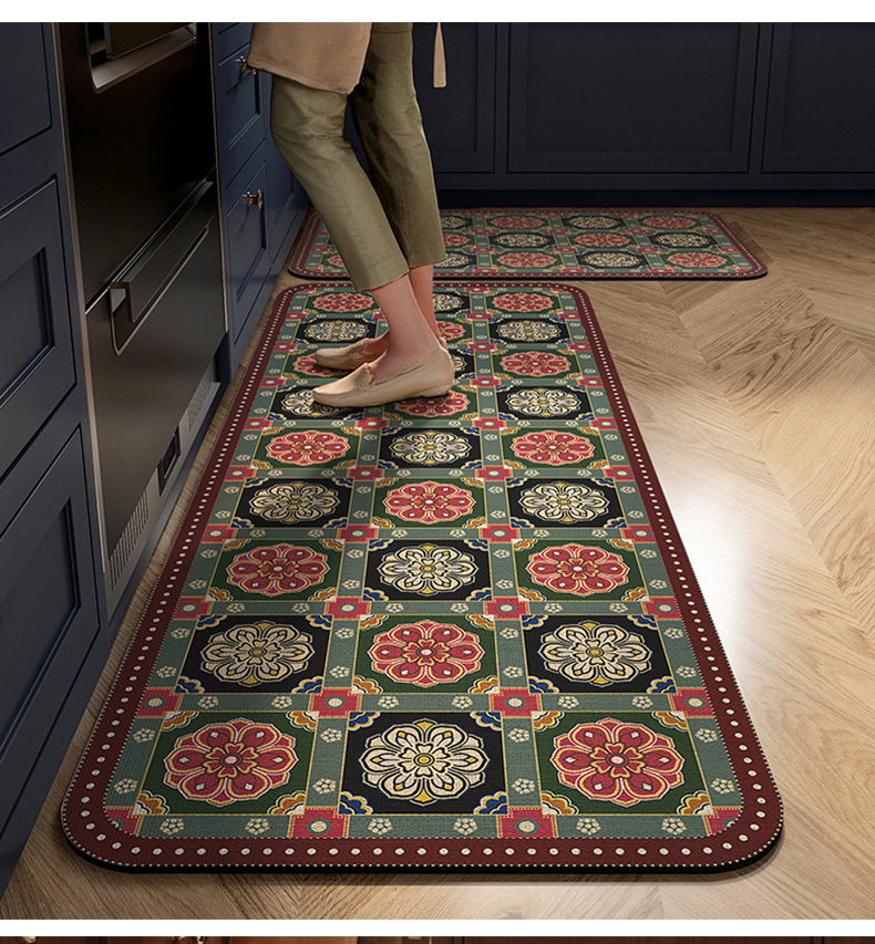 가벼운 고급 빈티지 주방 바닥 매트 가정용 Diatom 진흙 흡수성 비 슬립 발 매트 와이프 워시 프리 간편한 케어 롱 매트스토어 가기