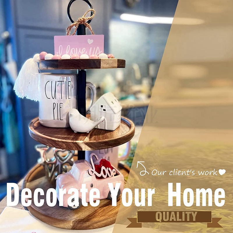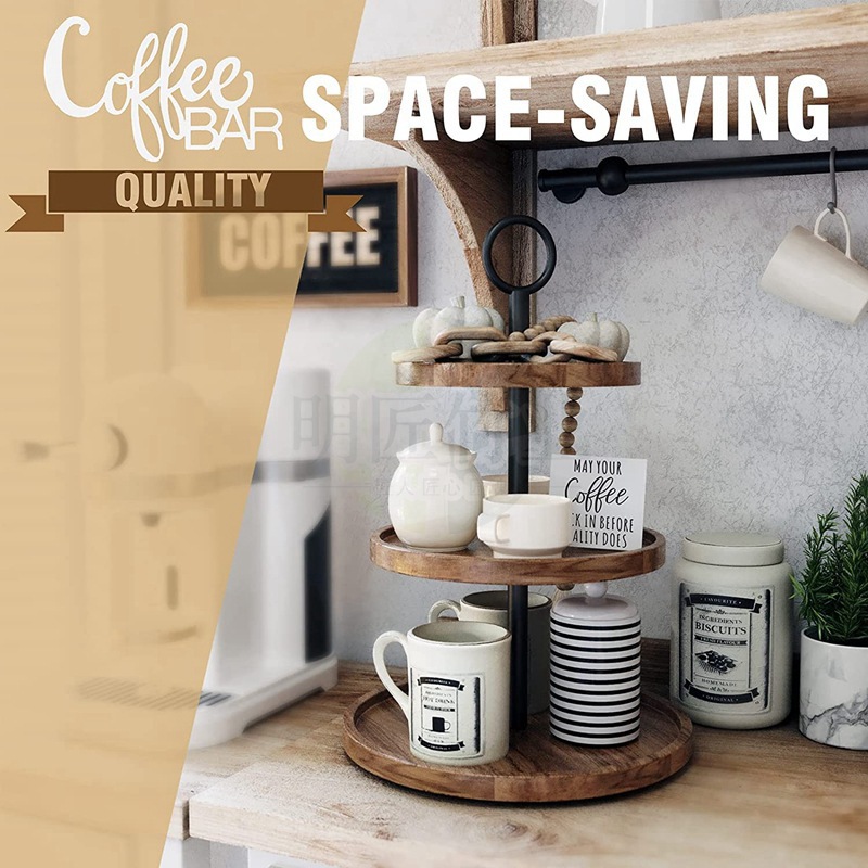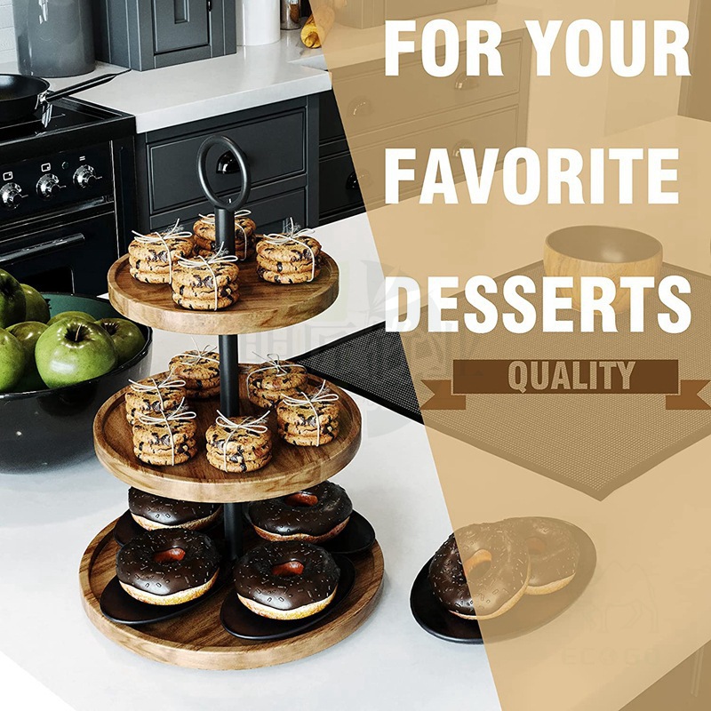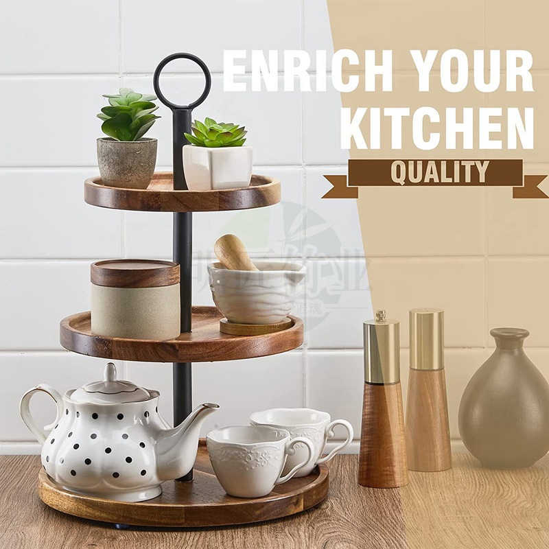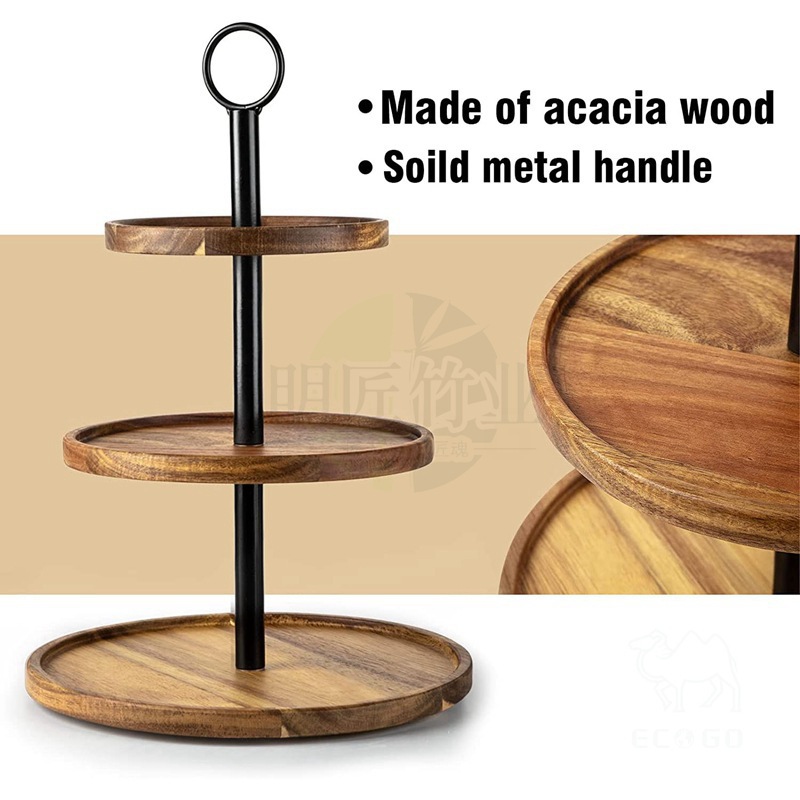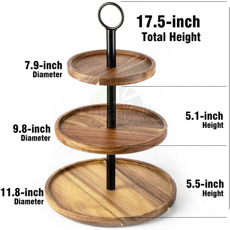 아카시아 우드 라운드 트레이 3 층 스토리지 랙 웨딩 디저트 테이블 장식 케이크 디스플레이 랙 커피 컵 랙