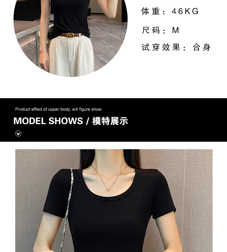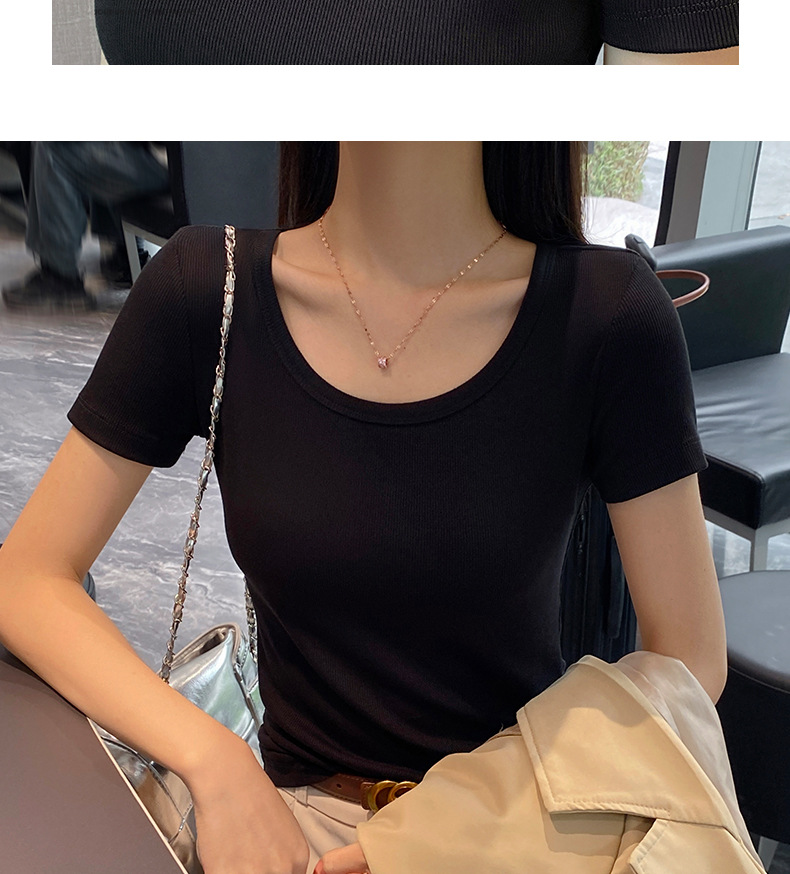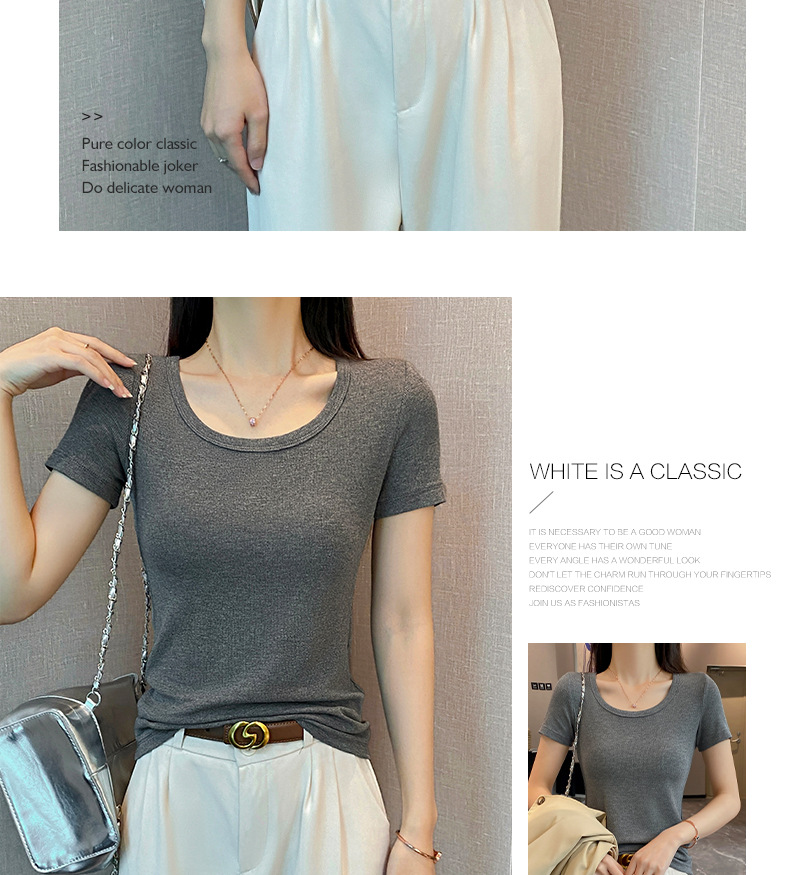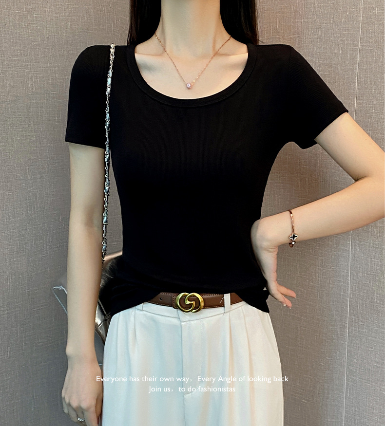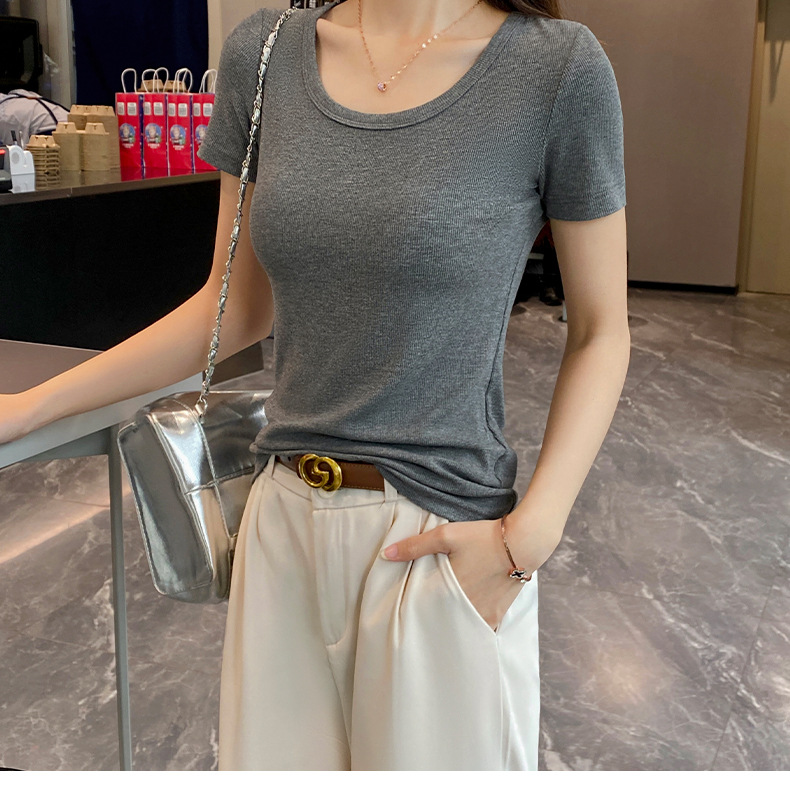 솔리드 스레드 니트 라운드 넥 반팔 티셔츠 여성용 봄과 여름 낮은 목 반소매 베이스 슬림 핏 슬리밍 올 매치 트렌디 탑