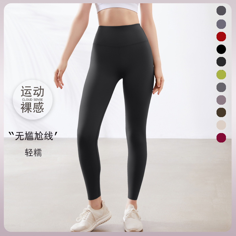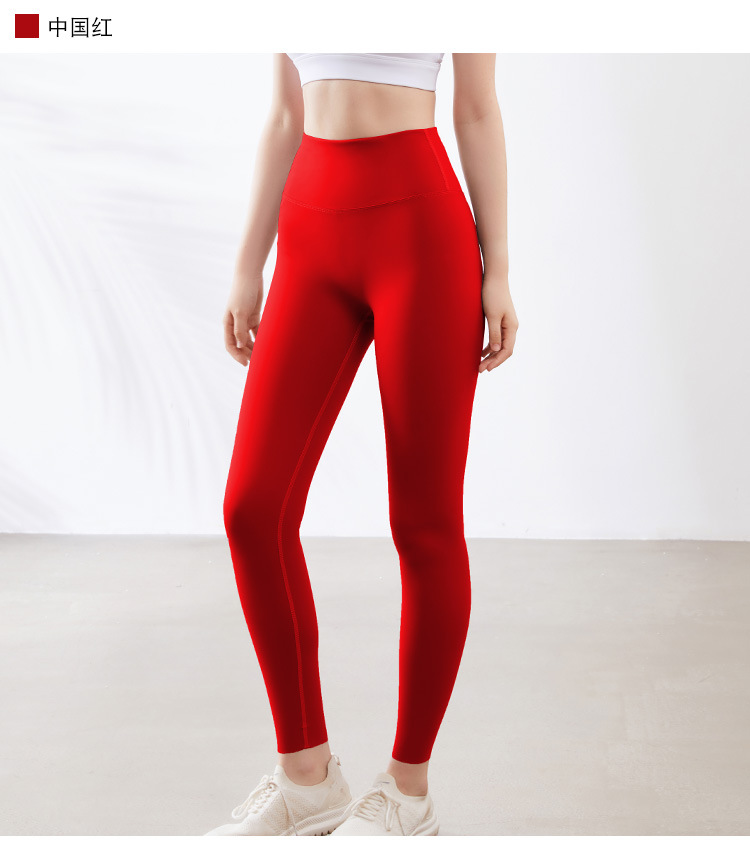 LULU No Embarassment Line 요가 바지 마크 Naked 유럽과 미국의 높은 허리 복숭아 엉덩이 운동 피트니스 달리기 바지 여성