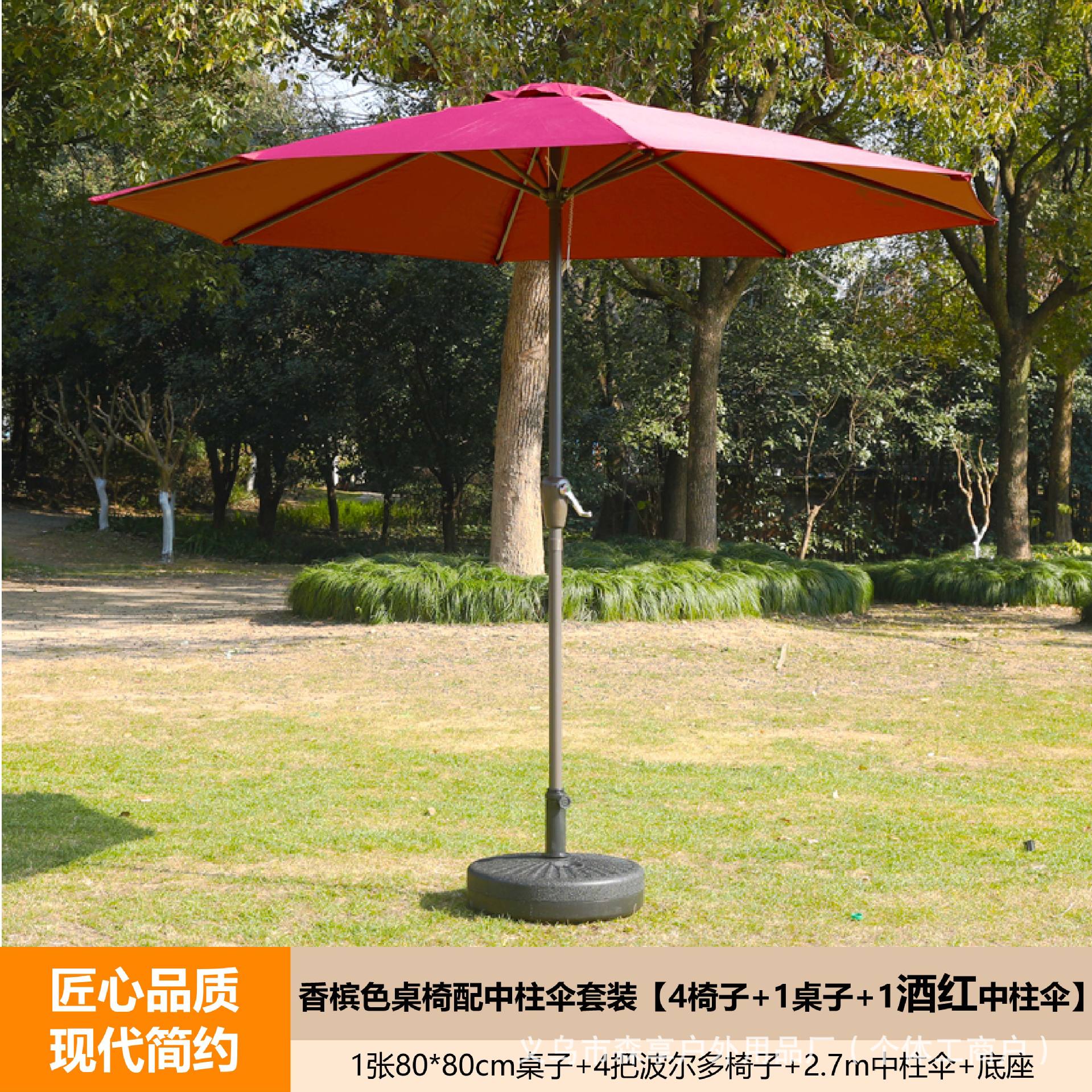 • 짙은 녹색 중간 기둥 우산 + 보르도 테이블과 의자