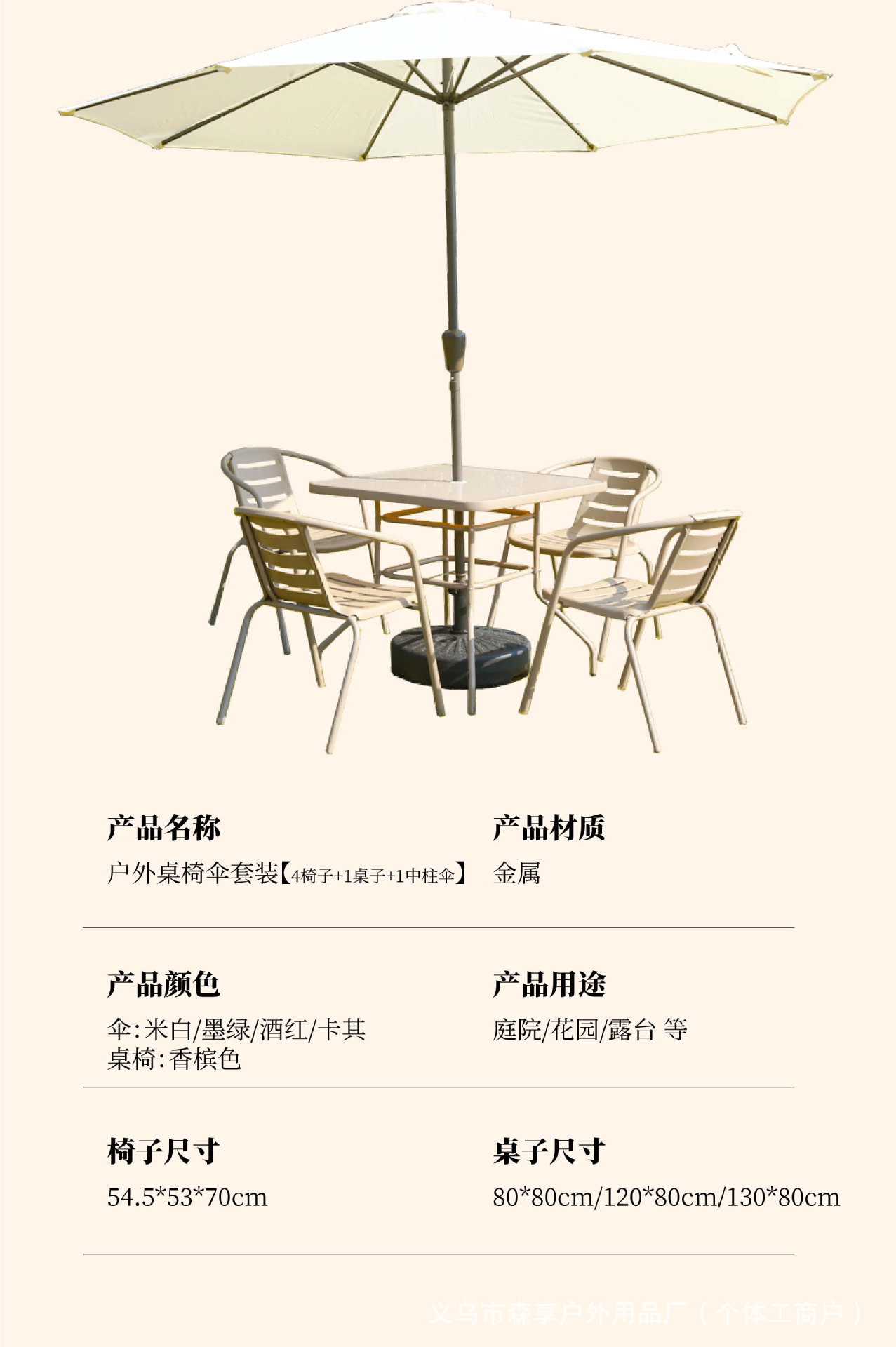 • 카키색 중앙 기둥 우산 + 보르도 테이블과 의자