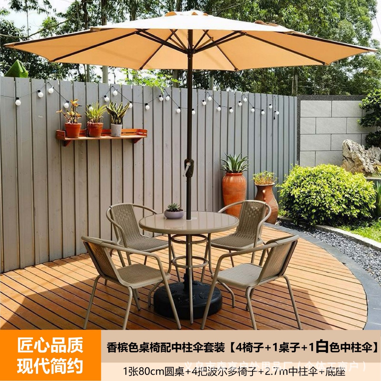 우산이 있는 야외 테이블과 의자, 등나무 의자, 발코니 레저 안뜰, 철제 테이블과 의자 세트, 정원 커피 테이블 조합, 야외 방수스토어 가기