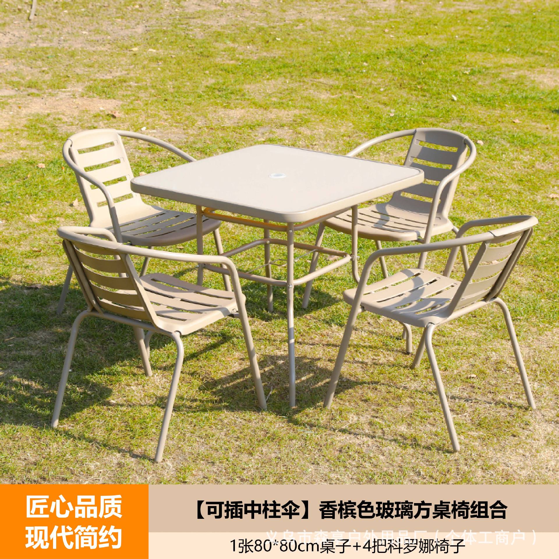 • [삽입형 기둥우산] 샴페인 유리 사각 테이블 + 코로나 의자