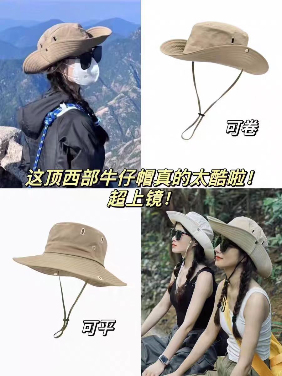 등산 모자 서양 카우보이 모자 여성의 자외선 차단제 야외 2024 새로운 여름 햇살 모자 남자의 방풍 여행 어부 모자