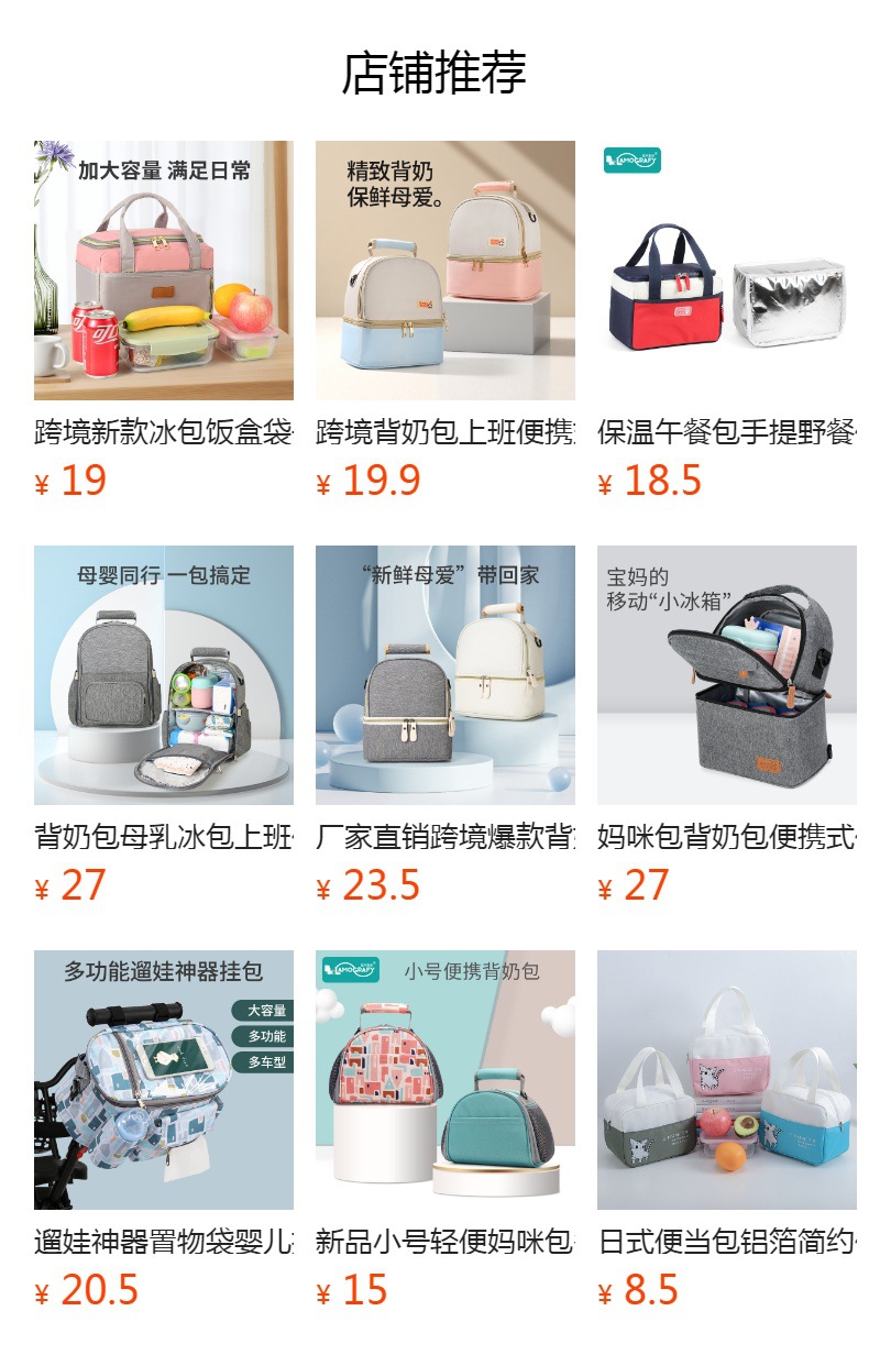 相遇即是缘分,本厂是一家以研发-设计为主的工厂,拥有自己的品牌,我厂已生产箱包10余年,做的就是品质和服务,您可以放心下单哦;主营:妈咪包,车载挂包,冰包,支持贴牌,支持来图来样定制;100件以上运费更合适哦,大货价请联系客服为您报价,九格箱包全体员工将竭诚为您服务!