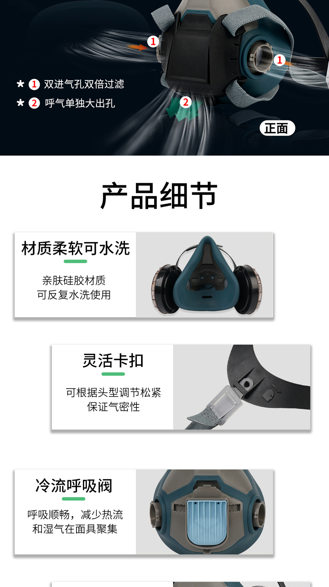 산업용 방진 마스크 먼지 방지 페인트 연마 농약 분진 보호 전면 호흡 밸브 마스크
