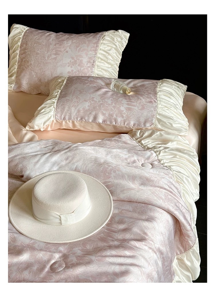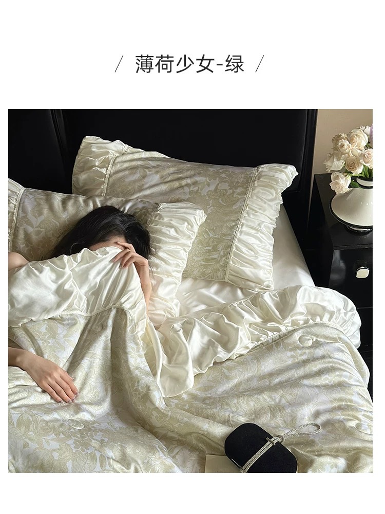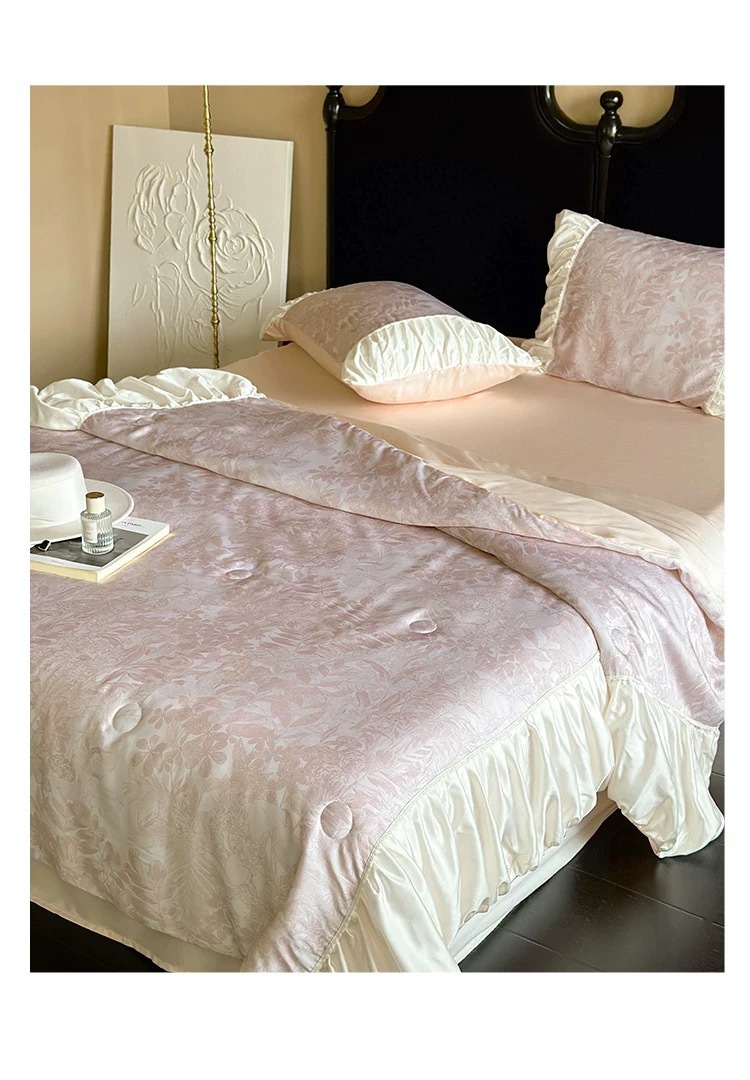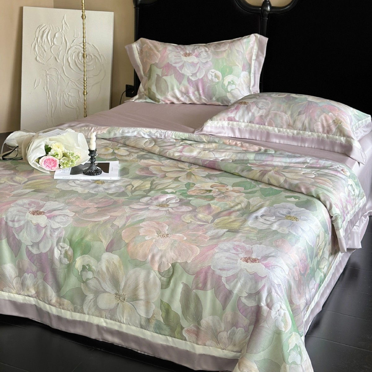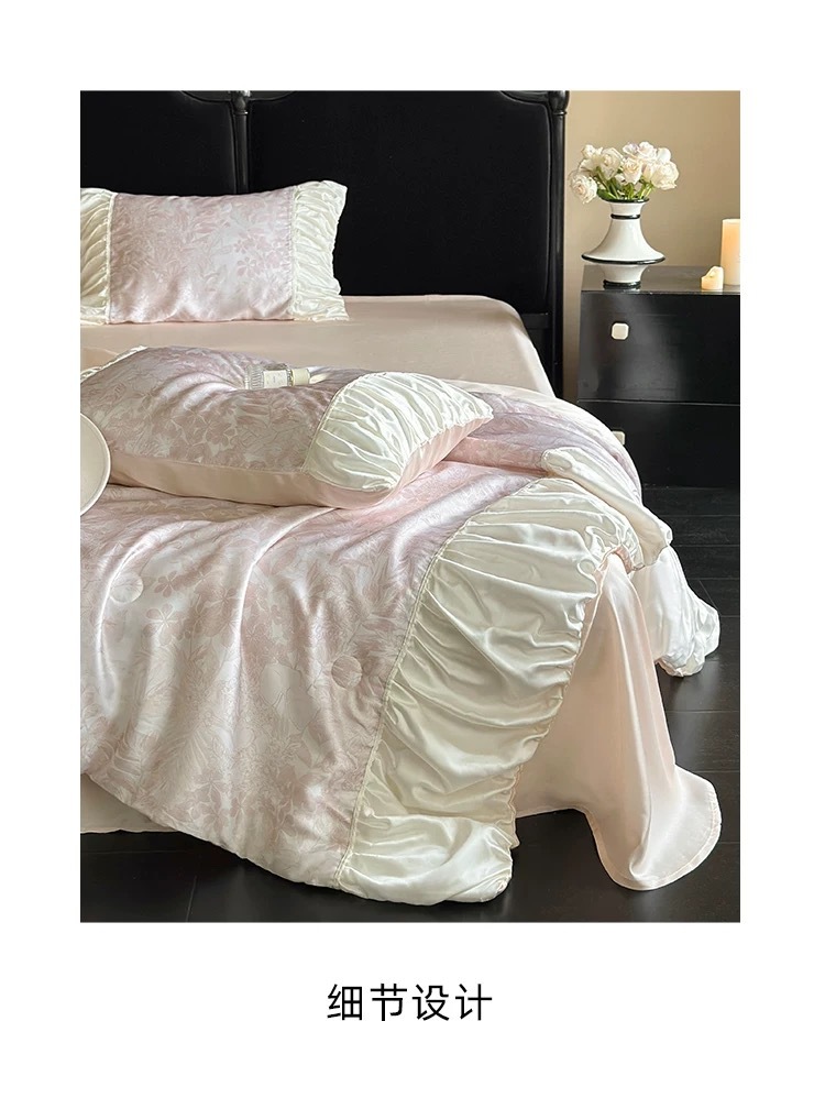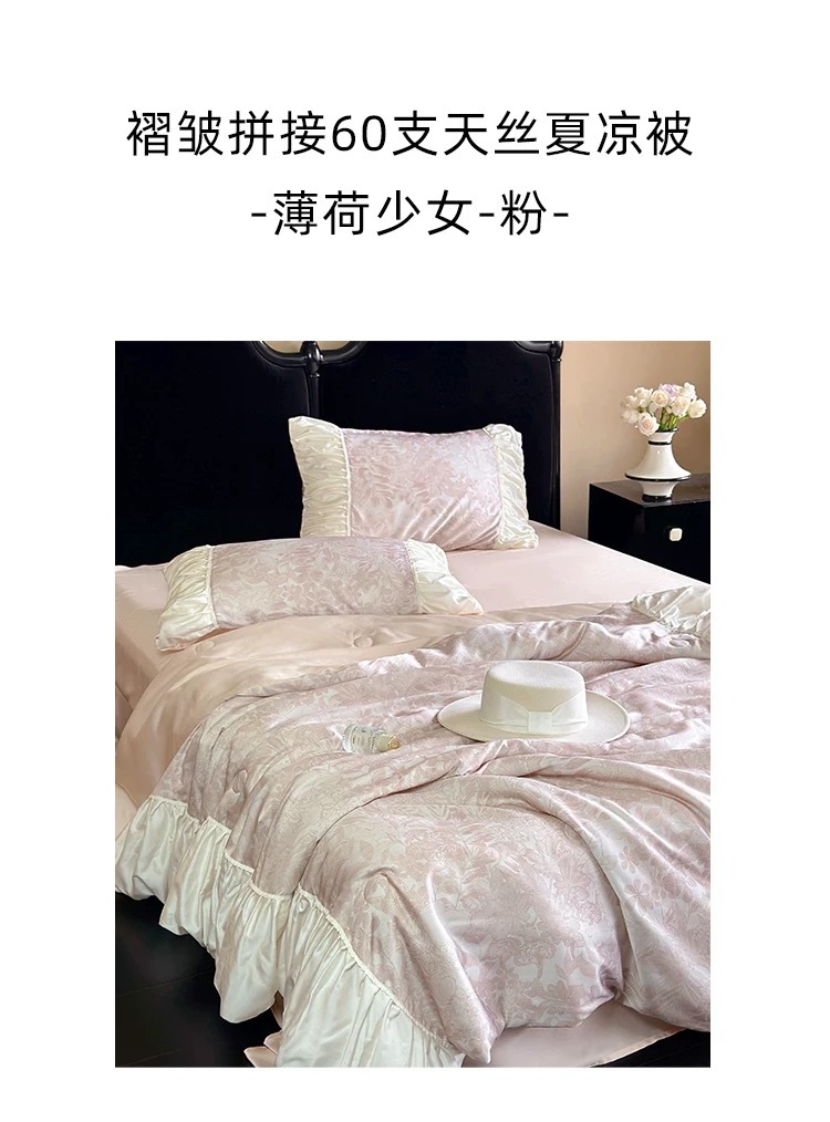 프랑스 소녀의 심장 60 Lanjing Tencel 여름 시원한 이불 4 조각 세척 가능한 공기 조절 퀼트 아이스 실크 벗은 잠자는 얇은 이불