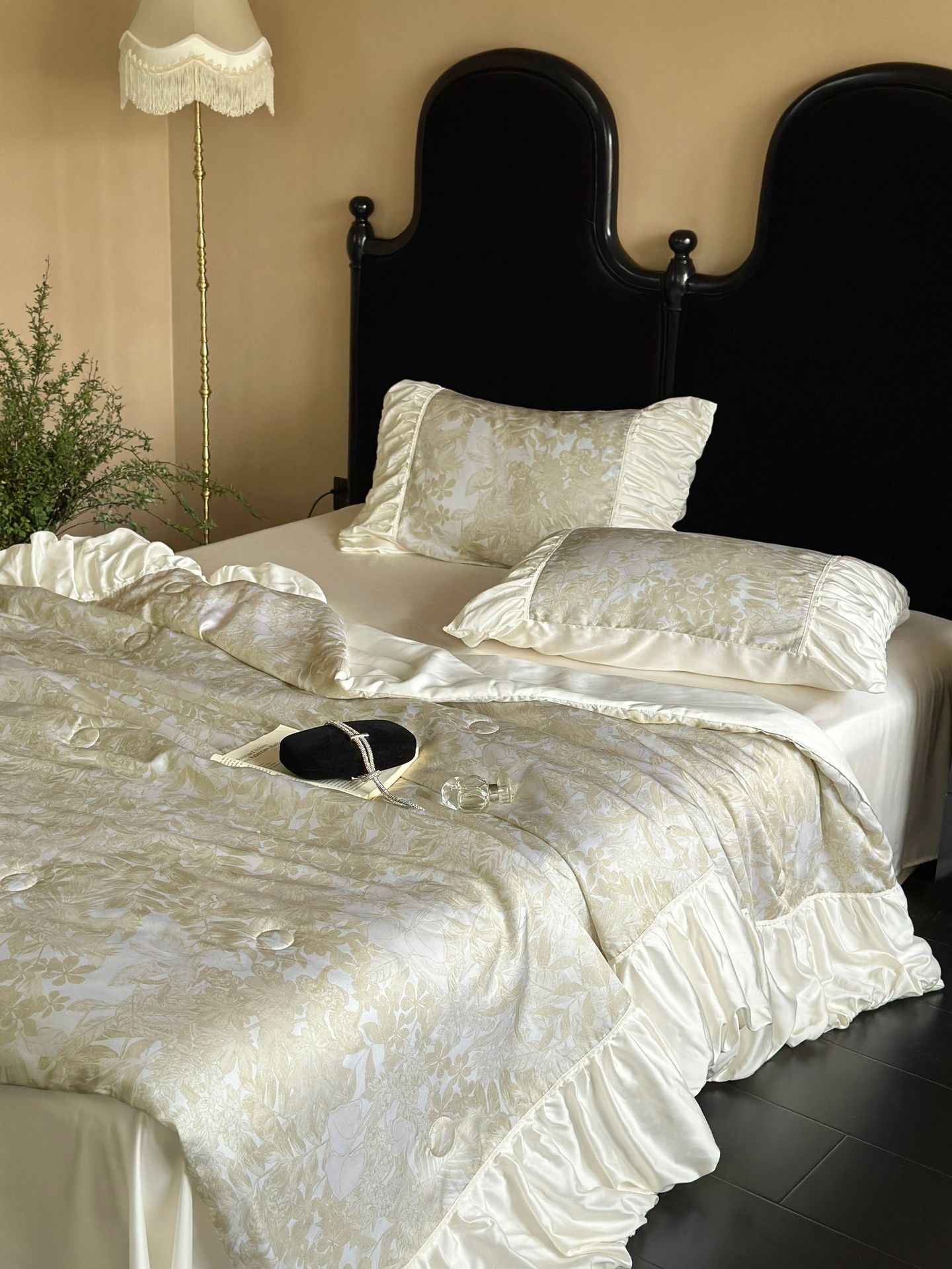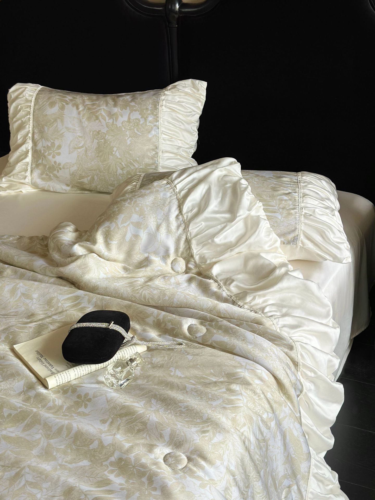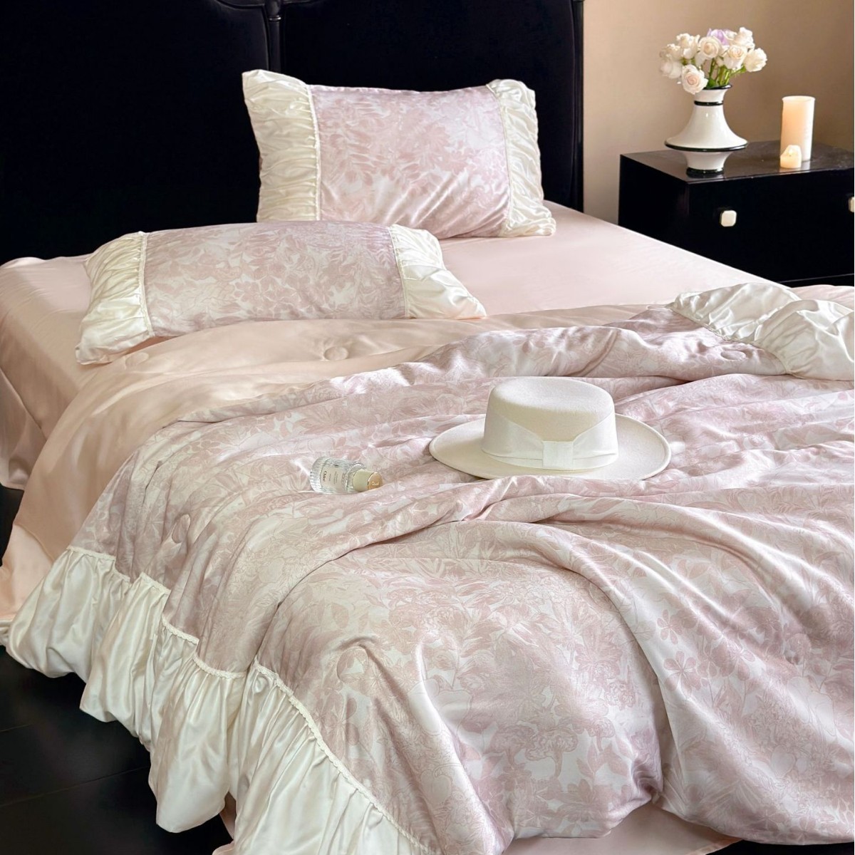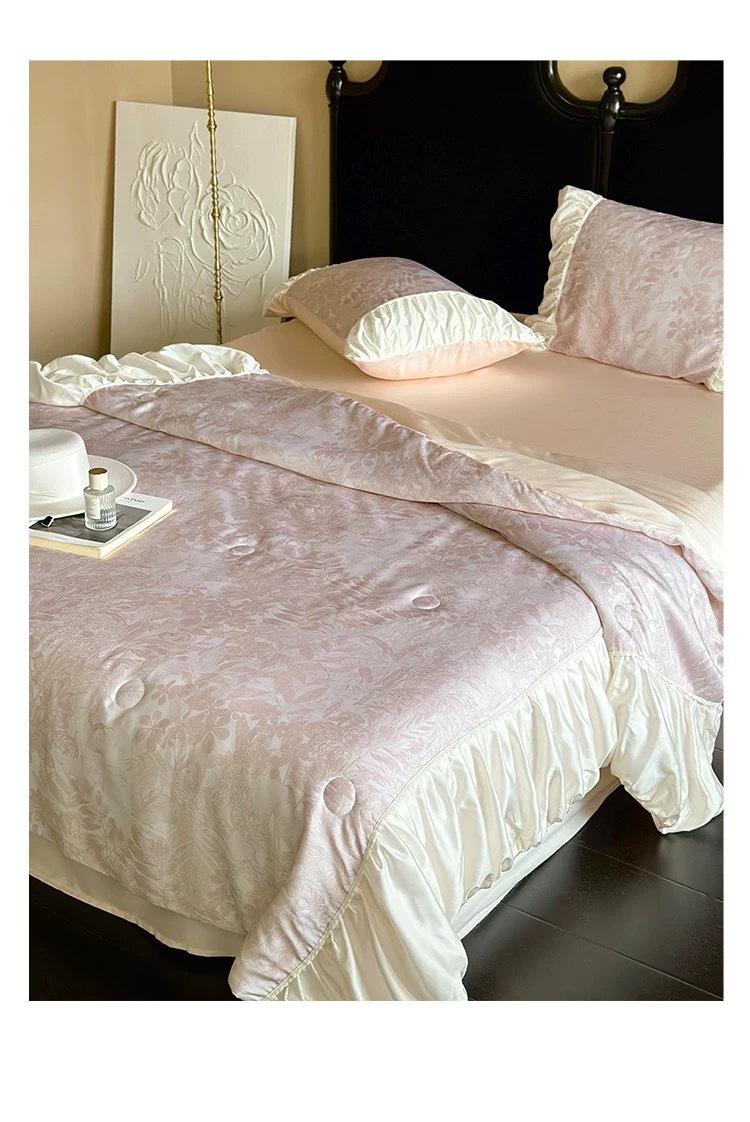 프랑스 소녀의 심장 60 Lanjing Tencel 여름 시원한 이불 4 조각 세척 가능한 공기 조절 퀼트 아이스 실크 벗은 잠자는 얇은 이불