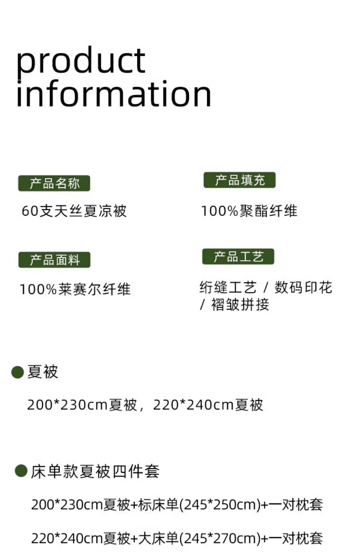 • 220*240cm 여름 이불 + 180*200 매트리스 커버 + 베갯잇 한 쌍