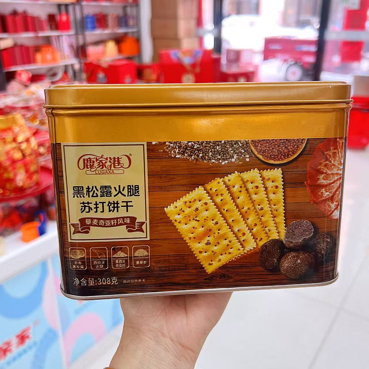 홍콩 Lujiagang 블랙 트러플 소다 비스킷 308g 철 상자와 함께 선물 가게 음식 그물 레드 라이브 스낵스토어 가기