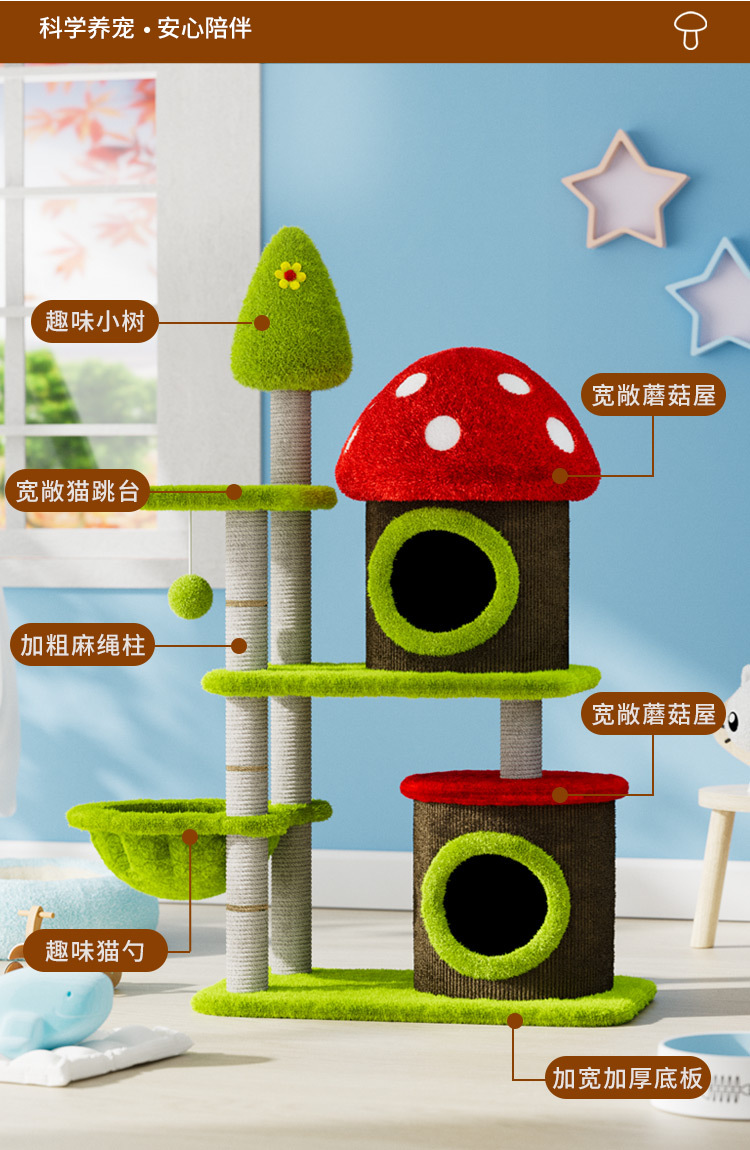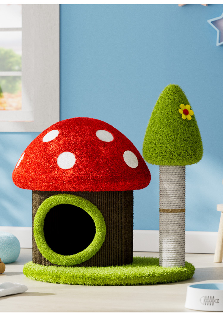 다채로운 버섯 사이 살 배럴 고양이 등반 랙 고양이 둥지 고양이 나무 통합 버섯 나무 구멍 고양이 장난감스토어 가기