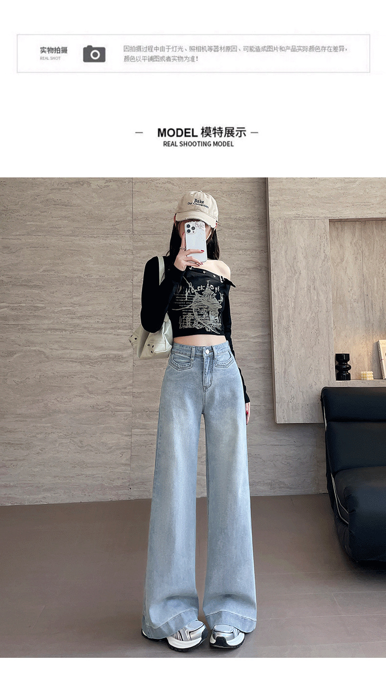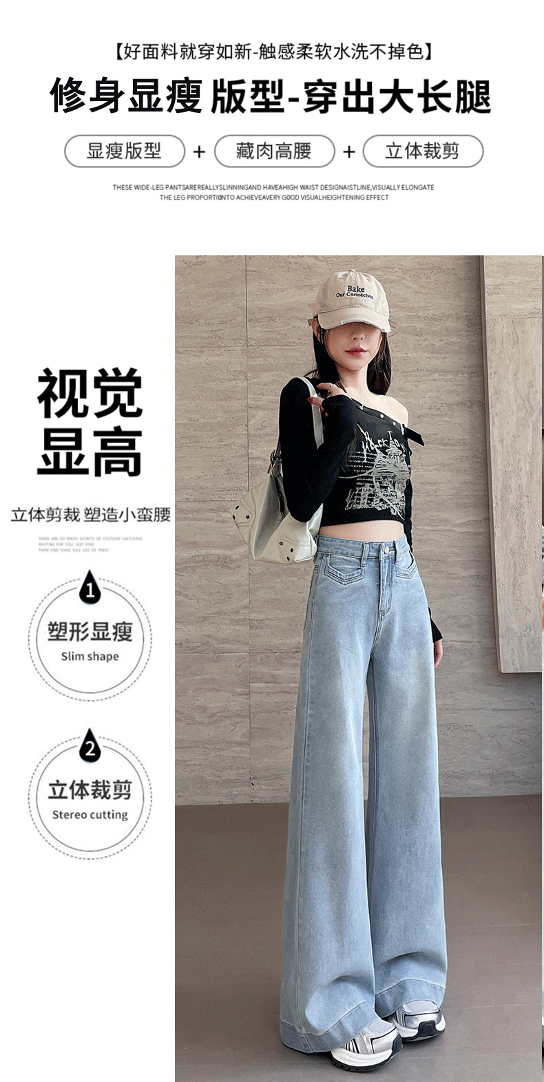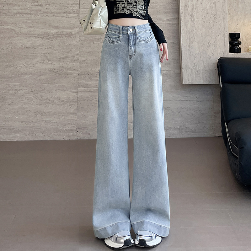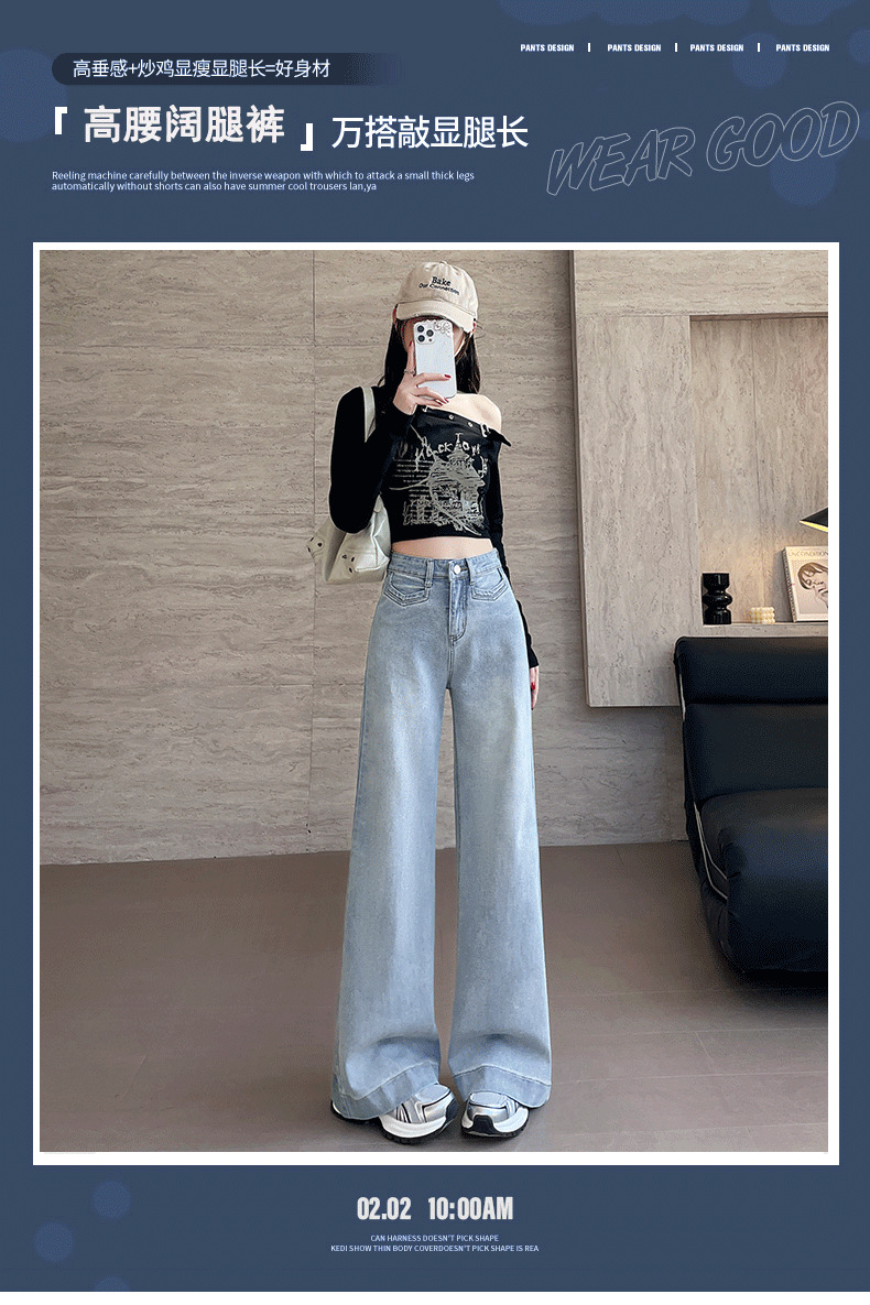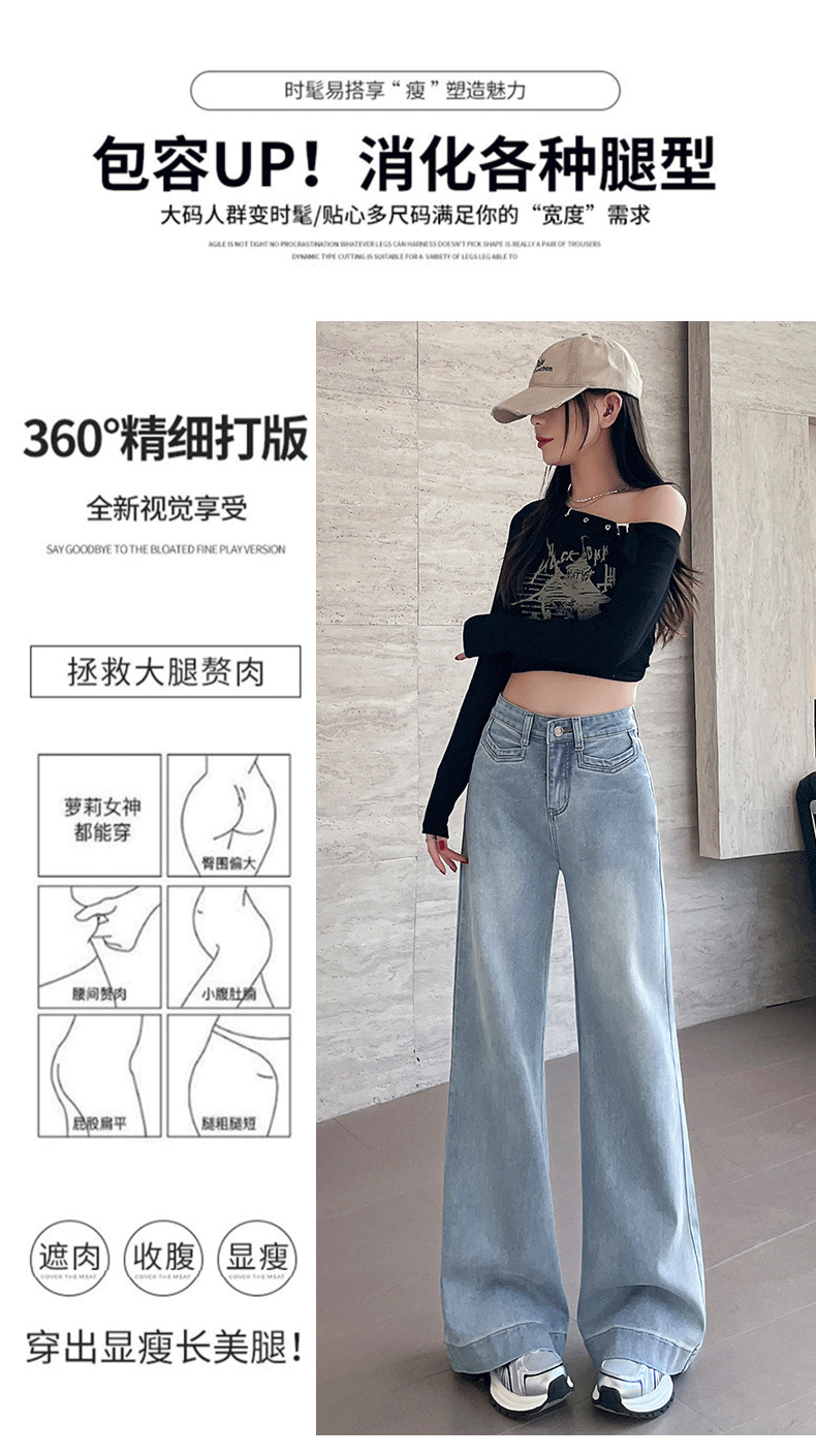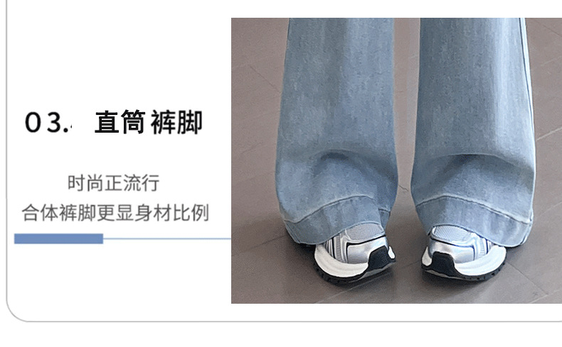3312 라이트 블루 스트레이트 레그 와이드 레그 청바지 여성용 루즈 슬리밍 올 매치 하이 웨이스트 미트 커버 레그 롱 청바지스토어 가기
