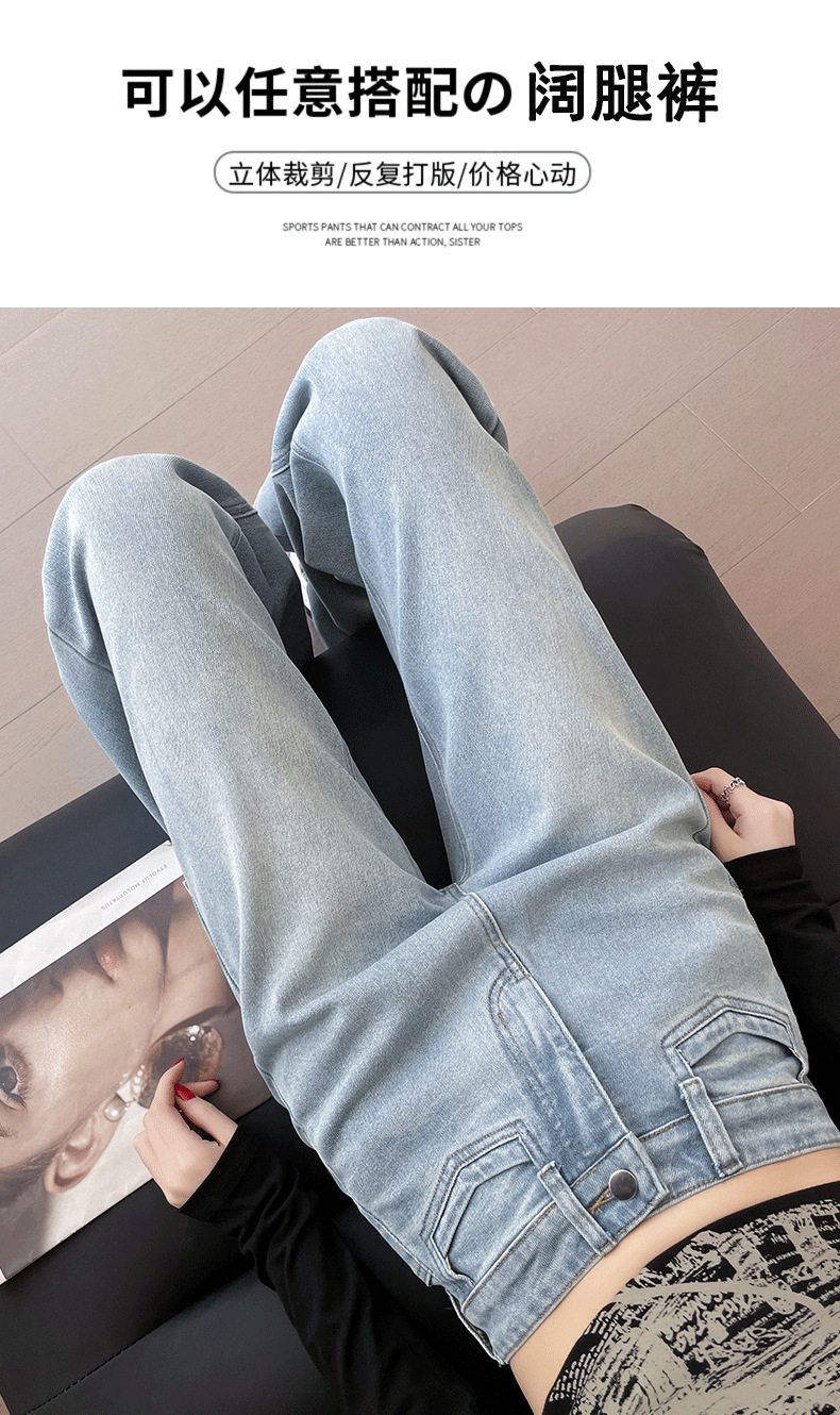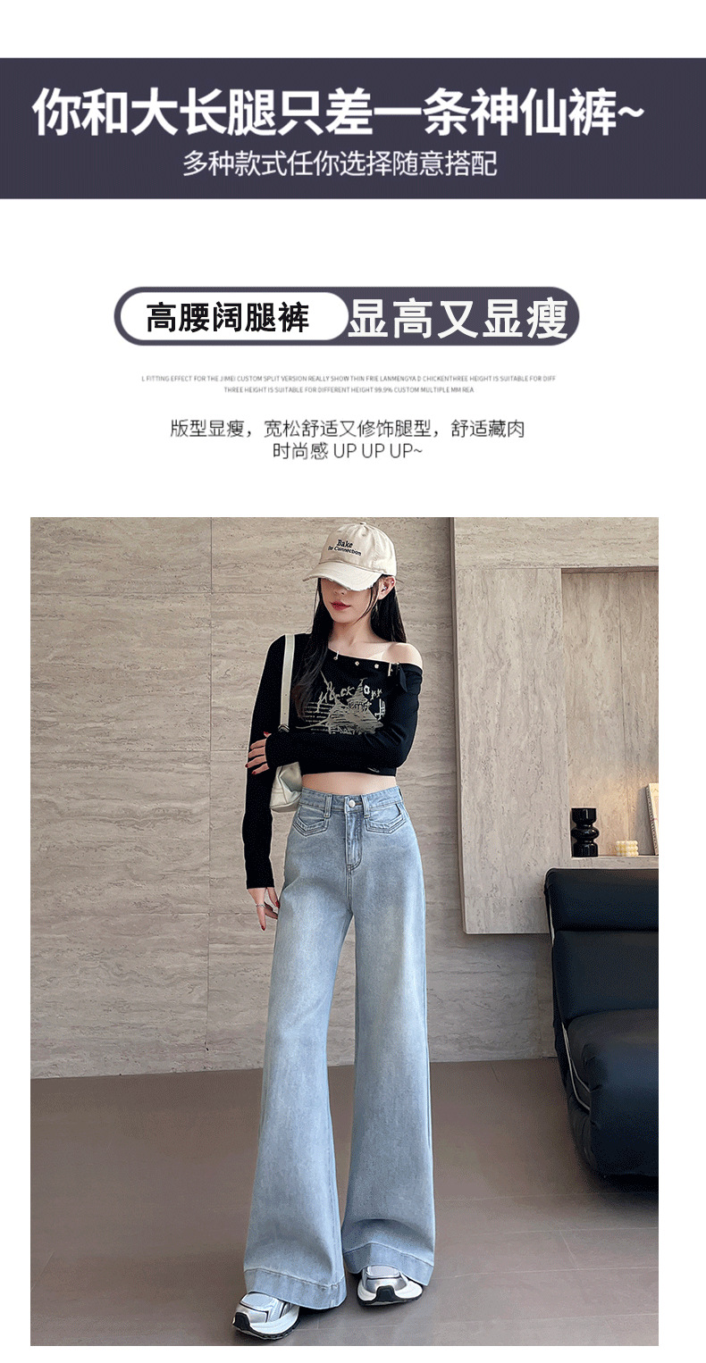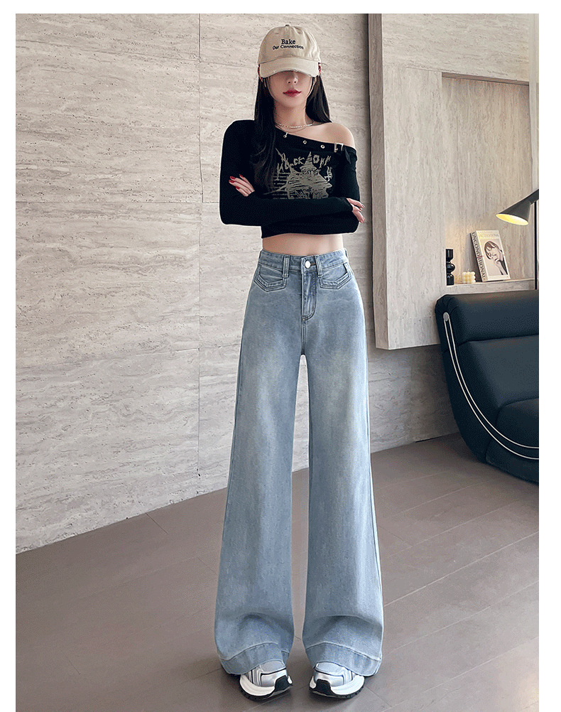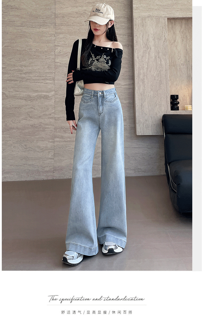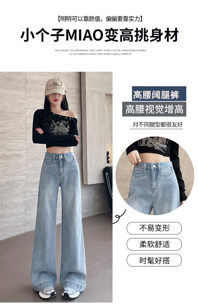 3312 라이트 블루 스트레이트 레그 와이드 레그 청바지 여성용 루즈 슬리밍 올 매치 하이 웨이스트 미트 커버 레그 롱 청바지스토어 가기