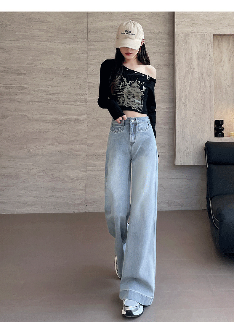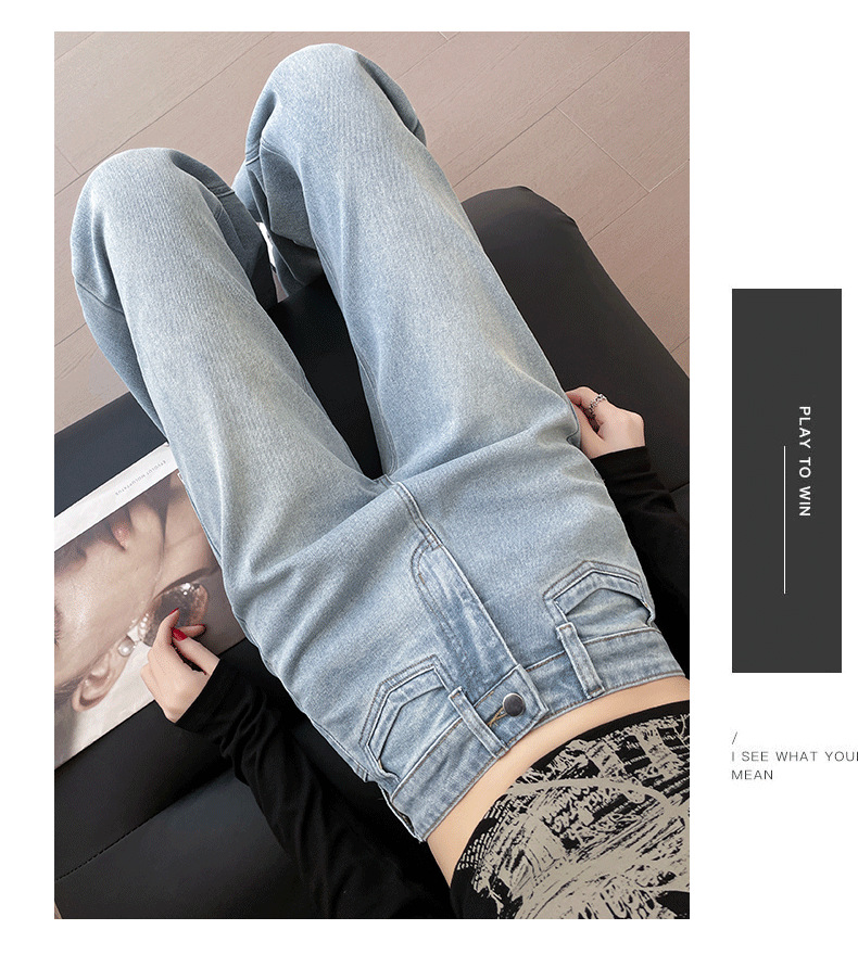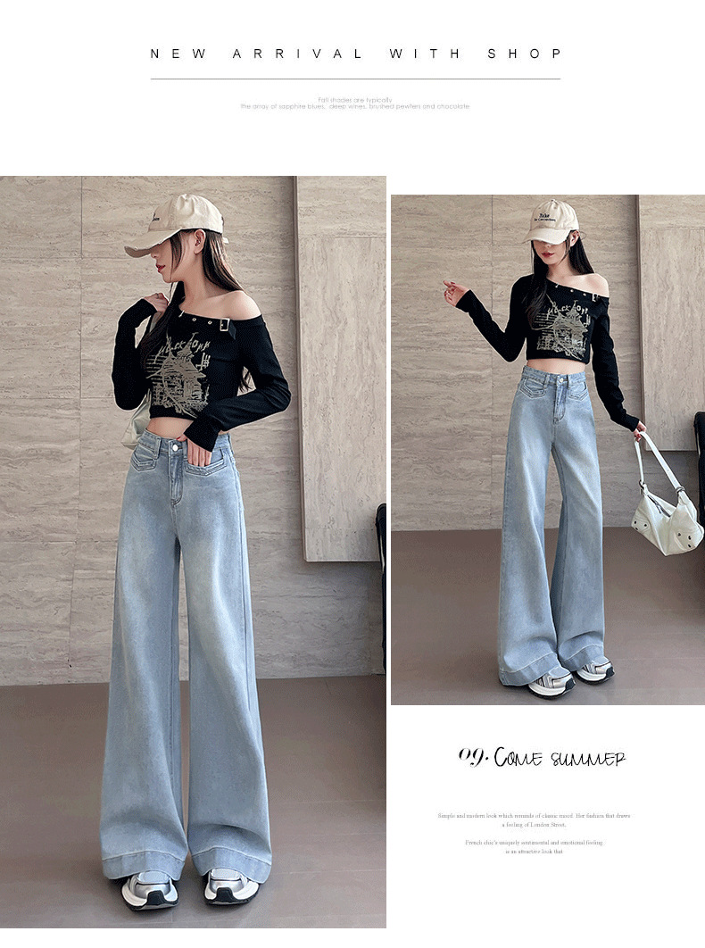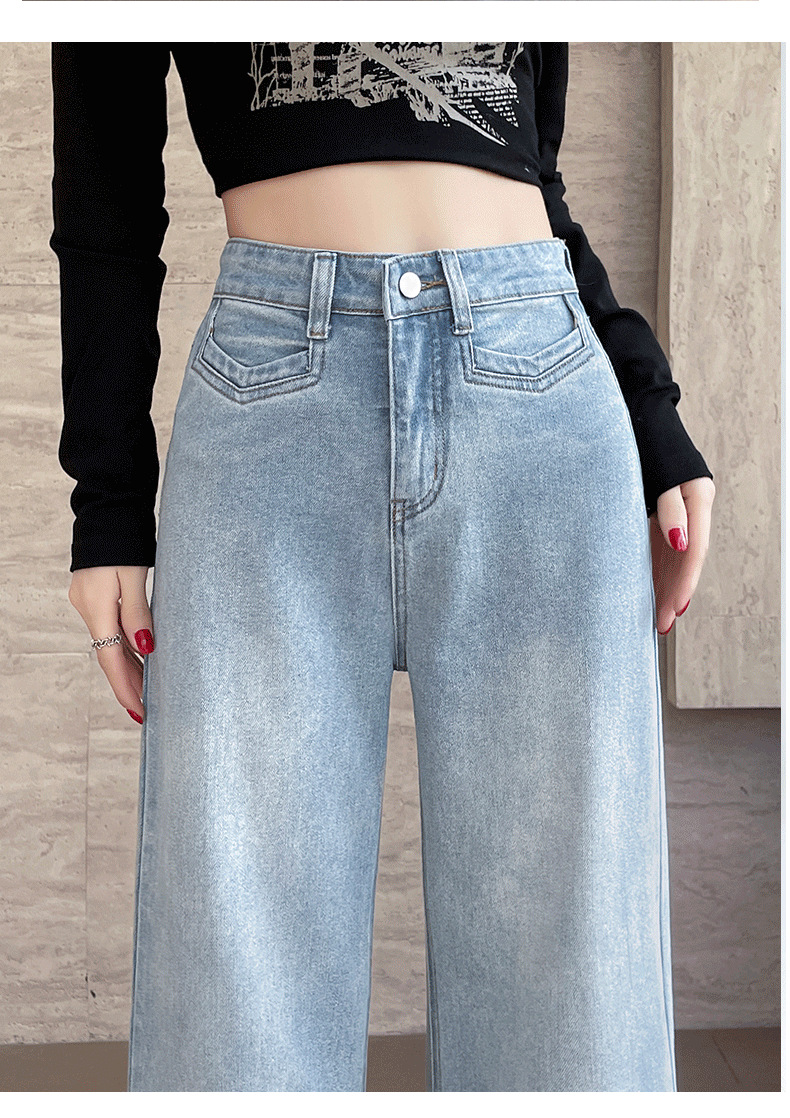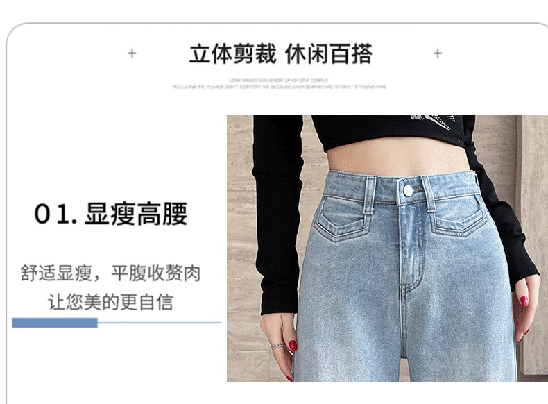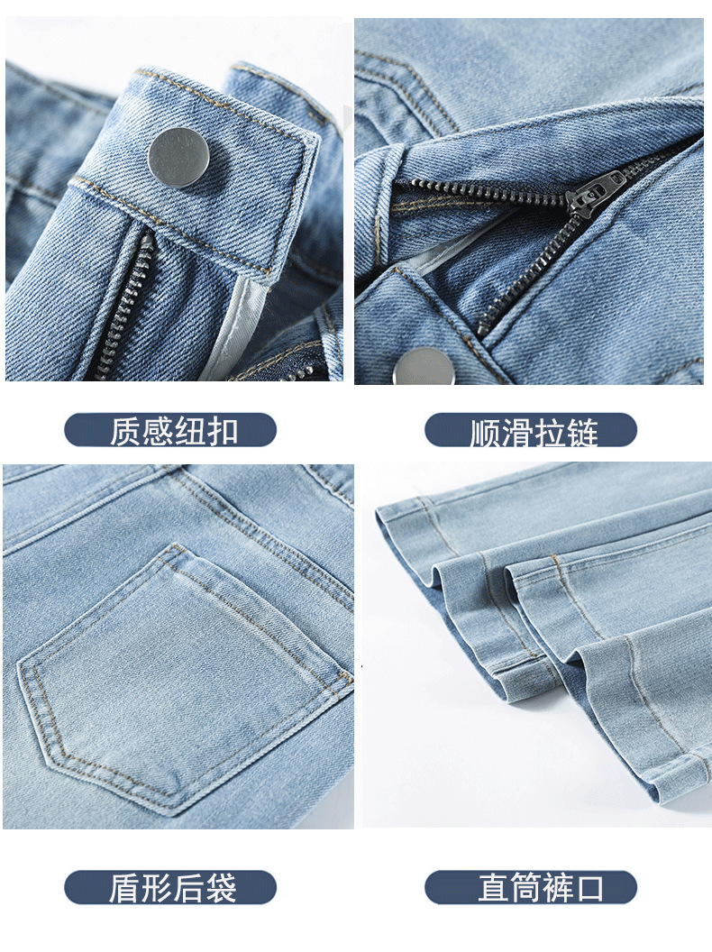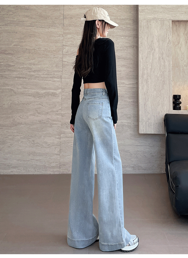 3312 라이트 블루 스트레이트 레그 와이드 레그 청바지 여성용 루즈 슬리밍 올 매치 하이 웨이스트 미트 커버 레그 롱 청바지스토어 가기