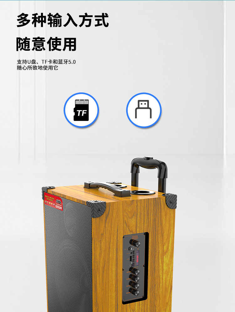 带蓝牙/带收音/带MIC/带遥控/带显示屏(七脚小屏)+带AUX/USB/TF卡/MIC、DC-5v升9v充电(Type-C充电座+USB带5V升压/无锂电保护/电位器音量、带无线麦功能+XA8879D单功放+高音/不带彩灯、对箱功能