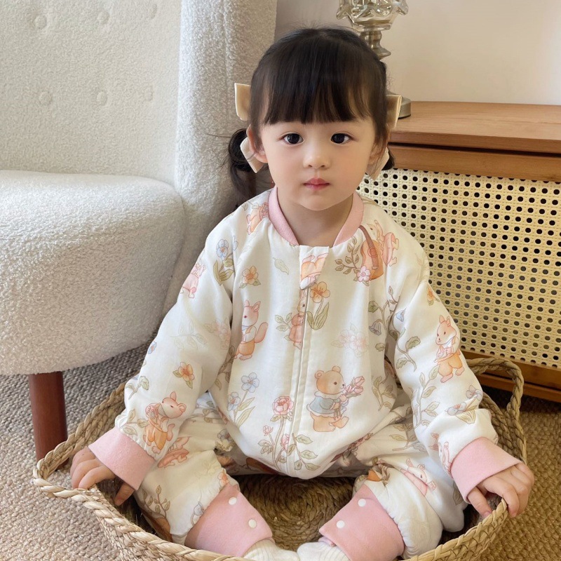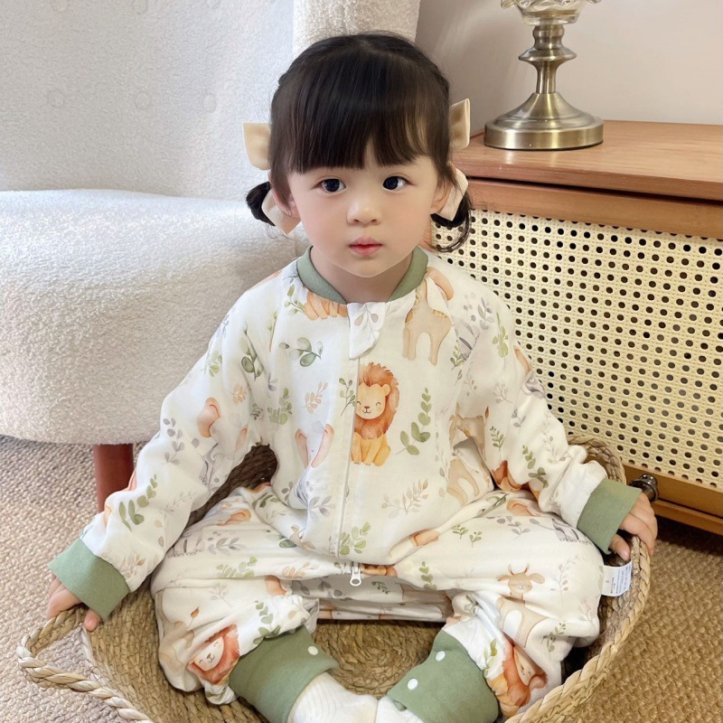 6겹 클래스 A 대나무 면 섬유 봄, 가을 아기 발차기 방지 이불 일체형 다리 분리 잠옷 실내 가정복 아기 침낭