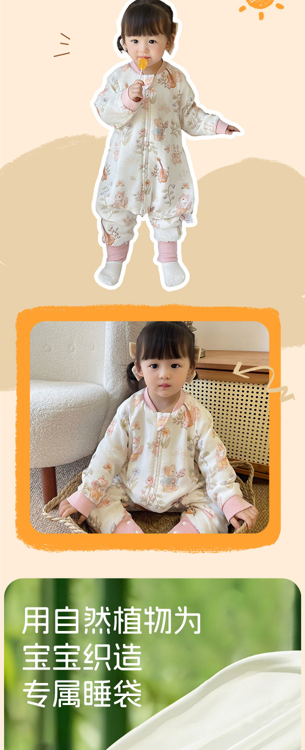 6겹 클래스 A 대나무 면 섬유 봄, 가을 아기 발차기 방지 이불 일체형 다리 분리 잠옷 실내 가정복 아기 침낭스토어 가기