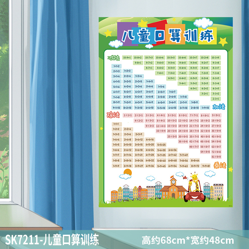 유치원 추가, 뺄셈, 곱셈 및 나눗셈 공식 중국 병음 테이블 젊고 젊은 응집력 조기 교육 어린이 방 교실 퍼즐 벽 스티커
