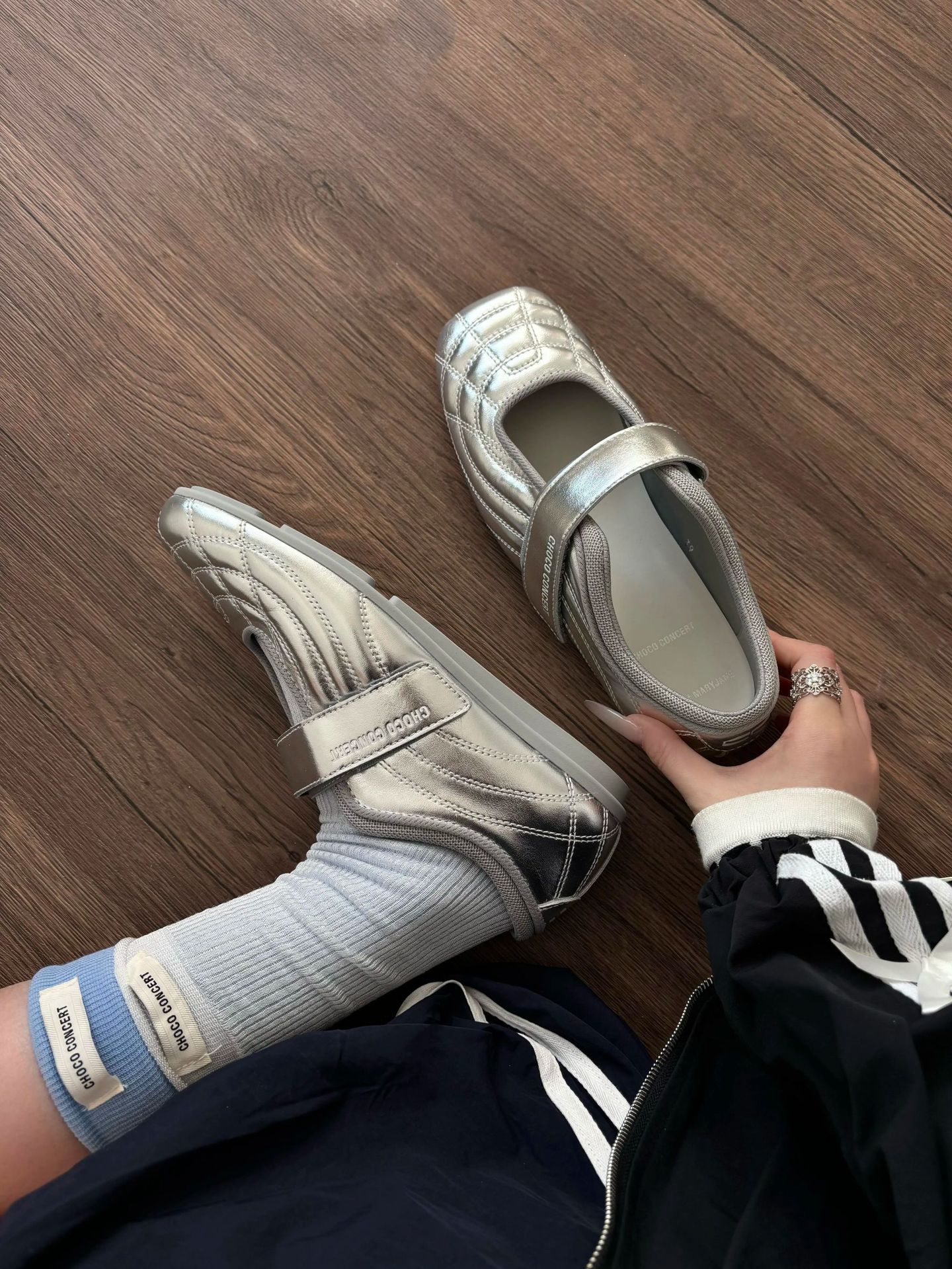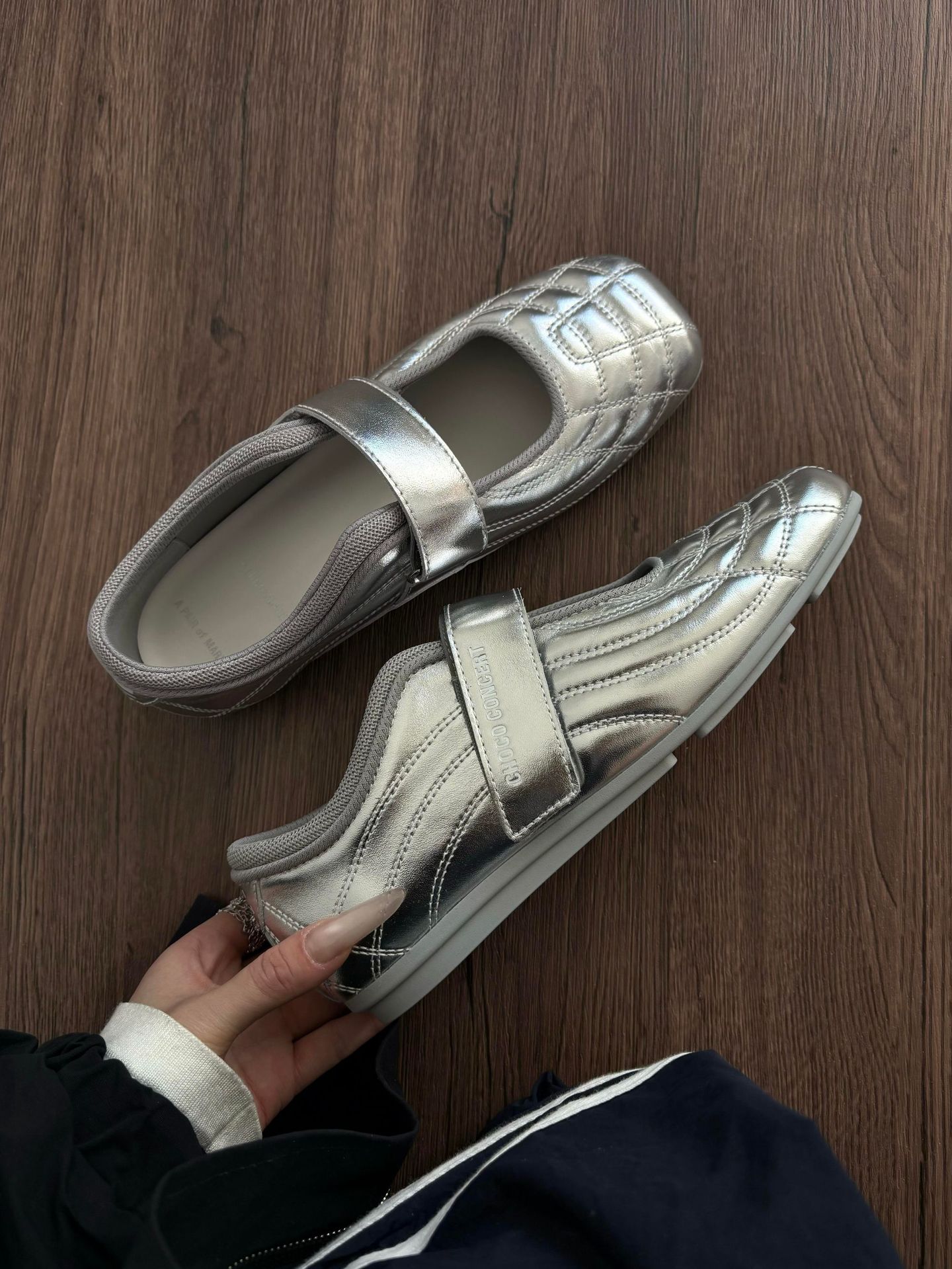 양가죽 버전 2025 새로운 한국 스타일 벨크로 발레 신발 플랫 하단 메리 제인 여성 실버 신발 스포츠 캐주얼 신발스토어 가기