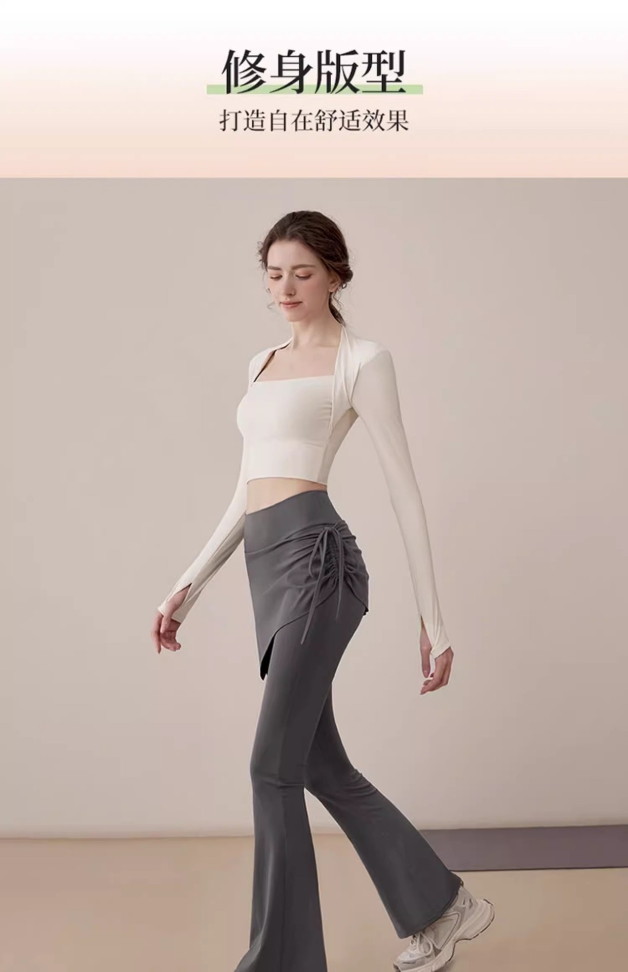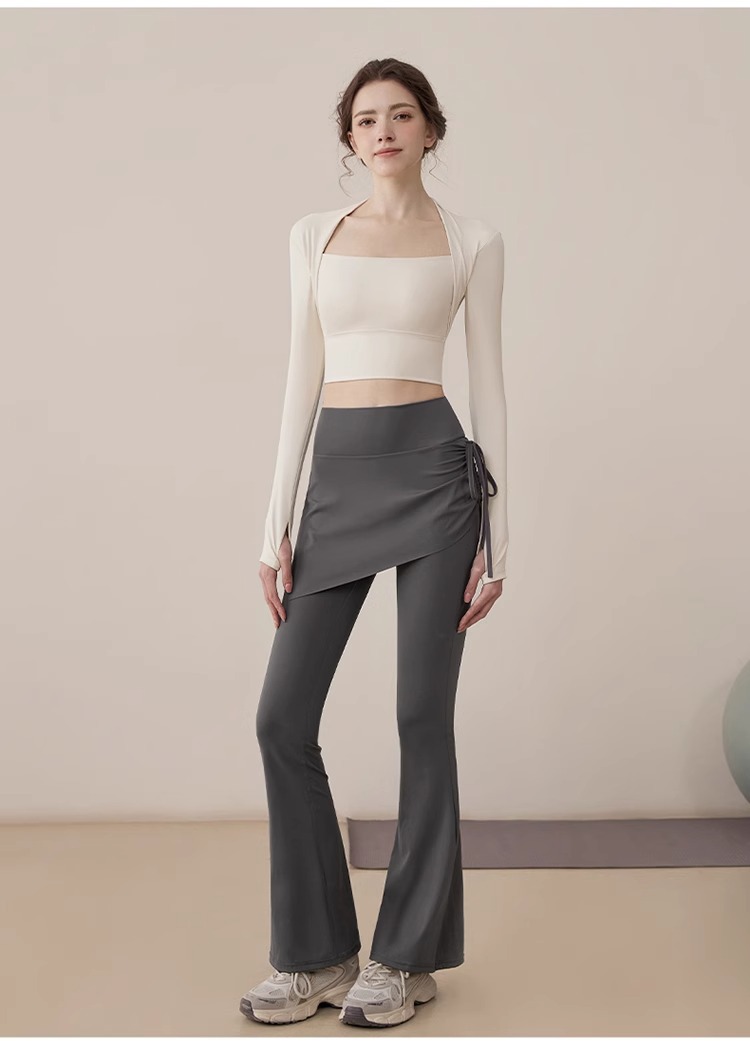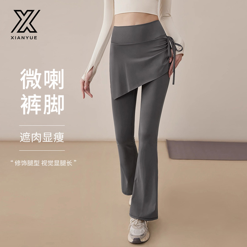 요가 Culottes 여성의 2025 새로운 가짜 투피스 러닝 바지 패션 착용 마이크로 핏 피트니스 바지 봄