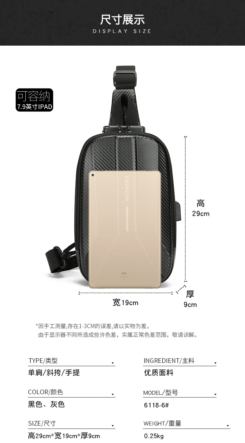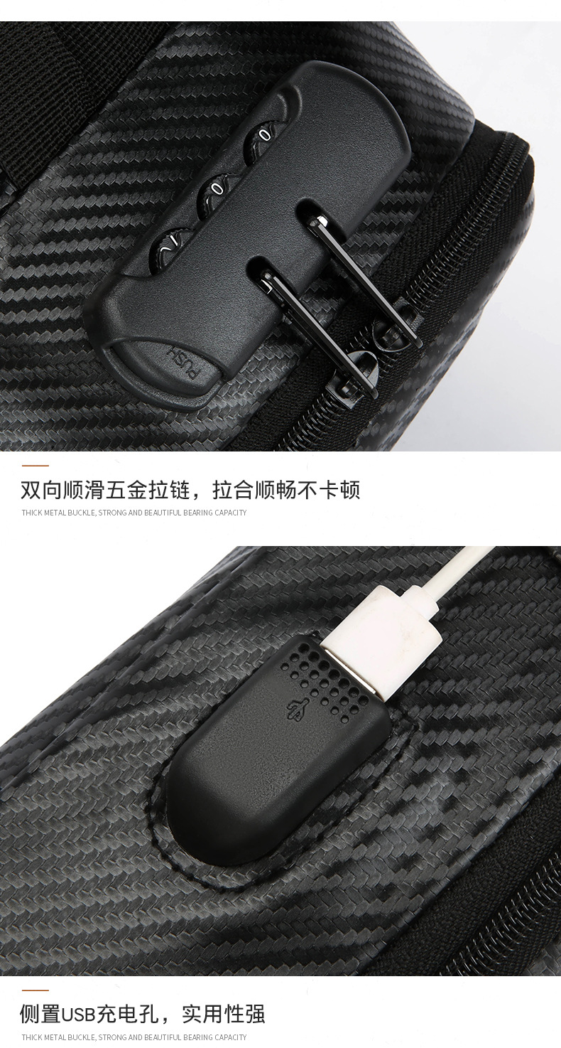 새로운 국경 한국 스타일 캐주얼 다기능 도난 방지 가슴 가방 남성 비즈니스 여행 방수 USb 크로스 바디 백