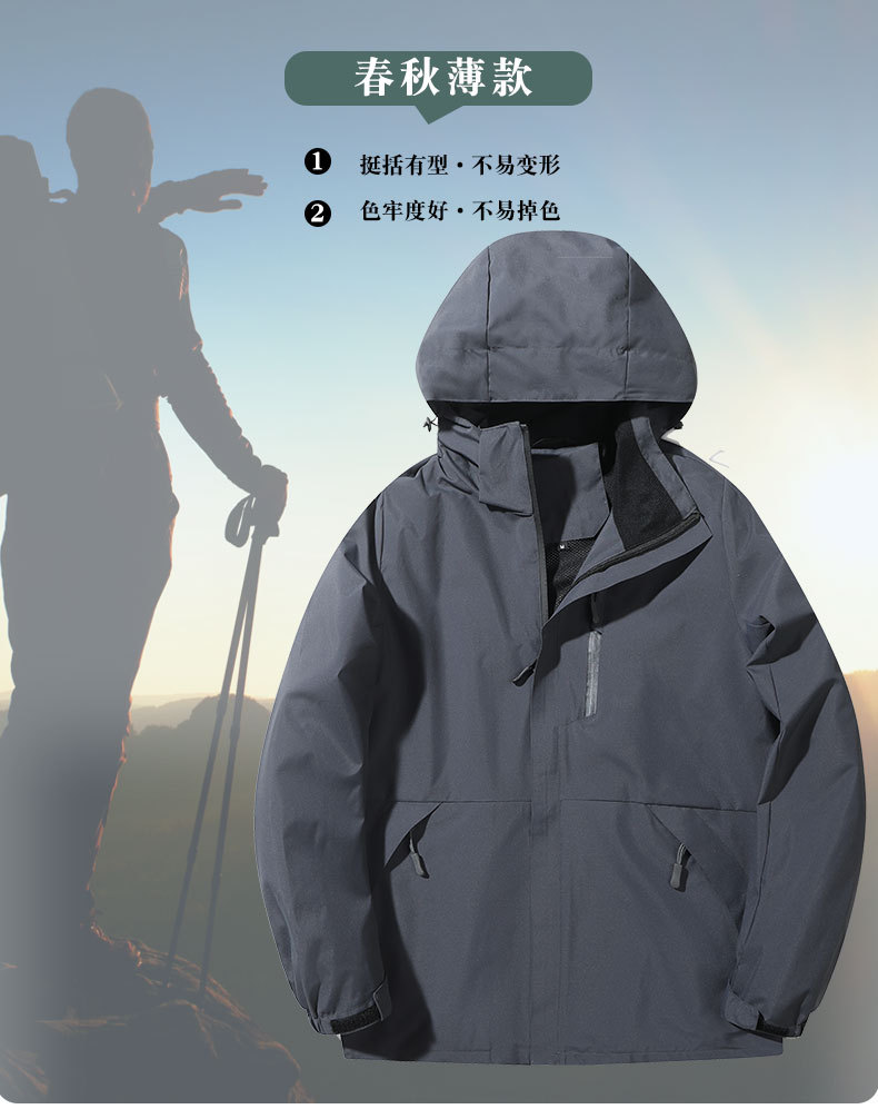 중년 아빠를위한 남성 봄 및 가을 코트 충전 의류 노인을위한 야외 얇은 재킷 방풍 의류 등산 세트