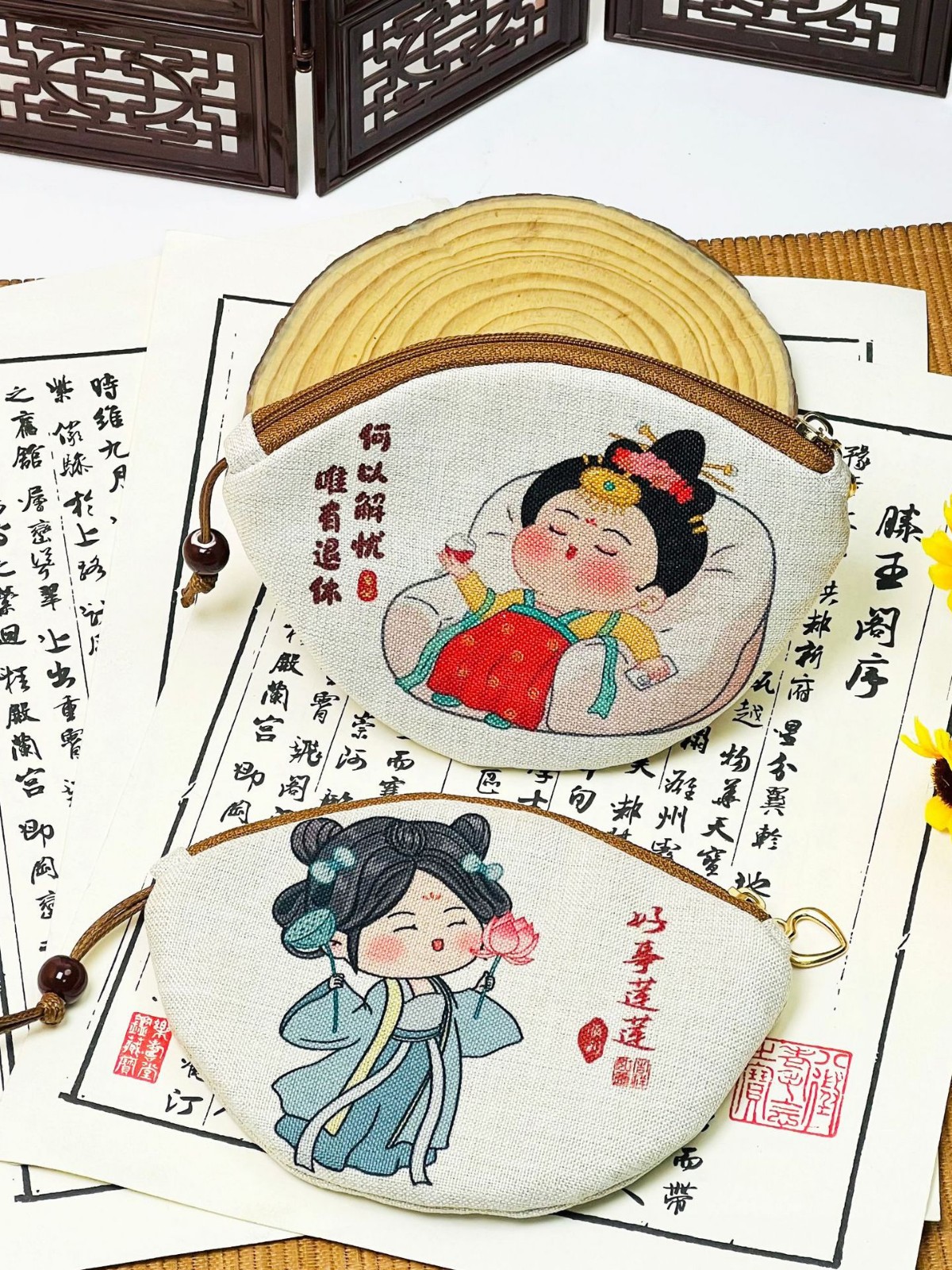 키 가방 Taobao 인기 디지털 인쇄 동전 지갑 풀 아웃 미니 가방 중국 스타일 수제 패브릭 만화 카드 가방스토어 가기