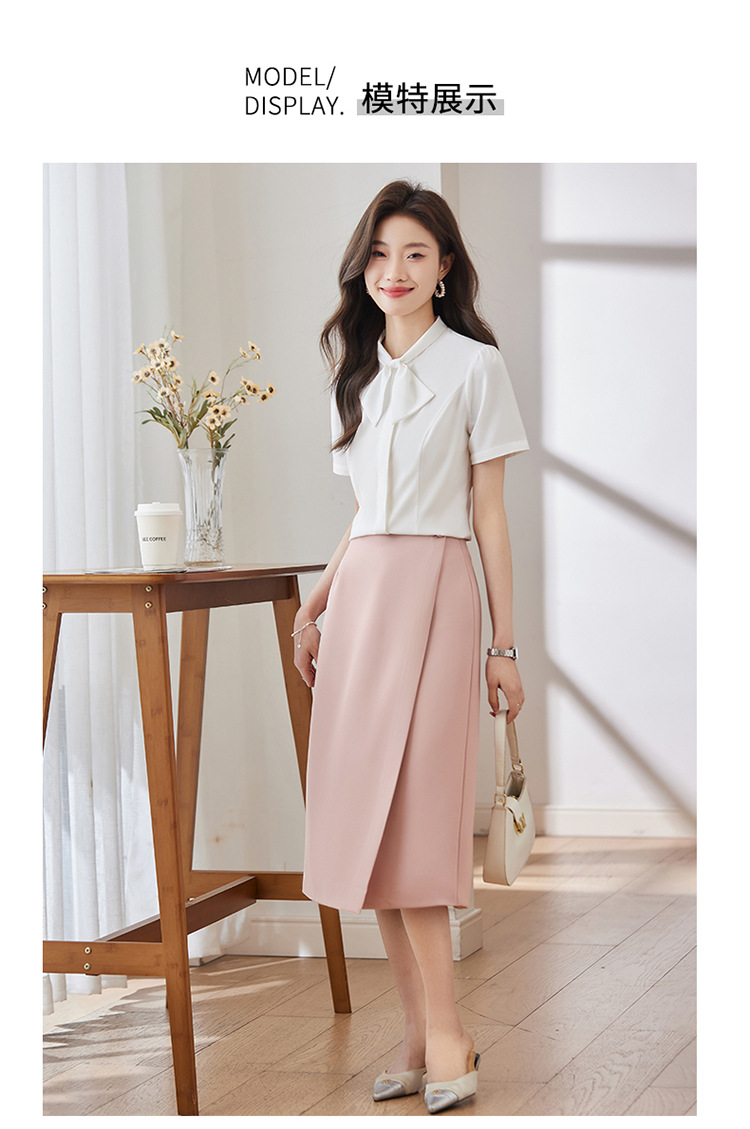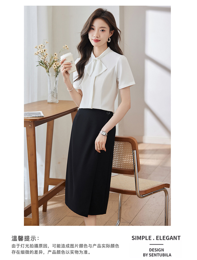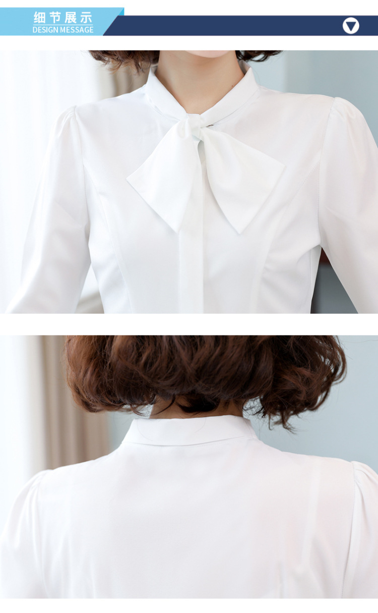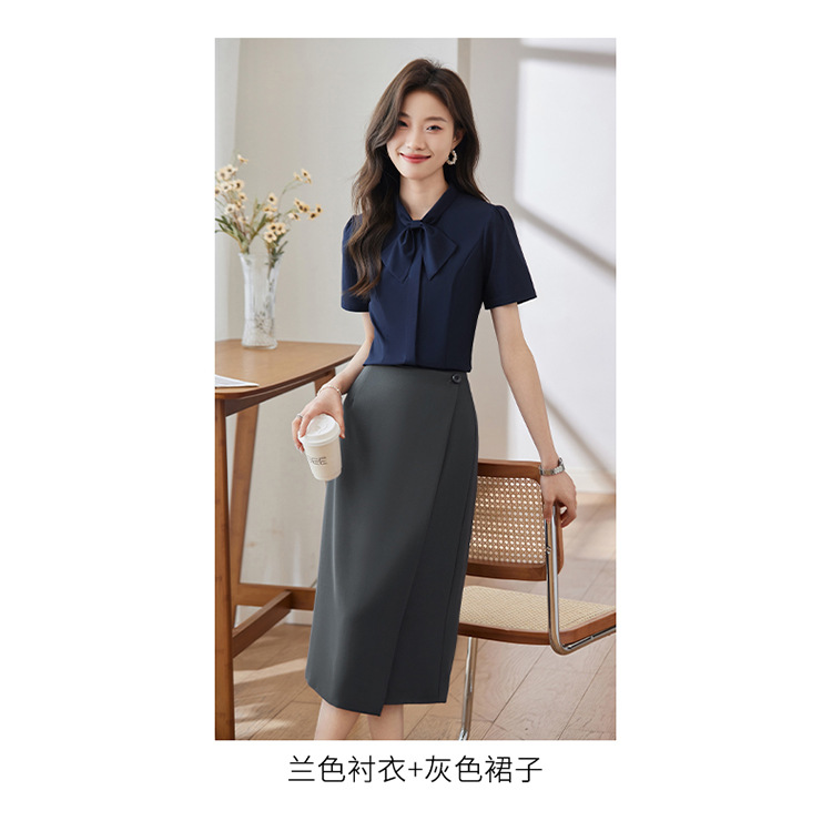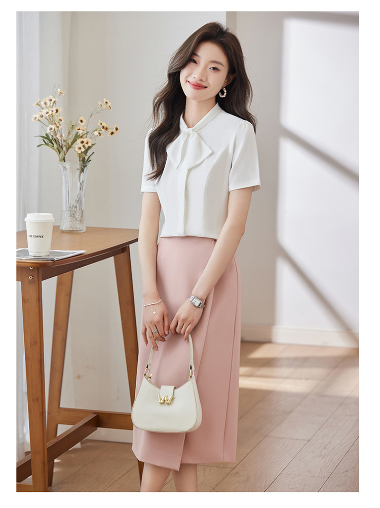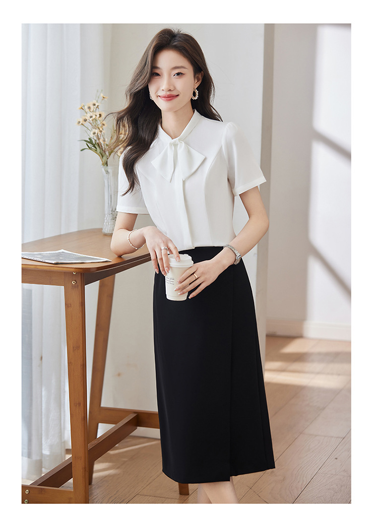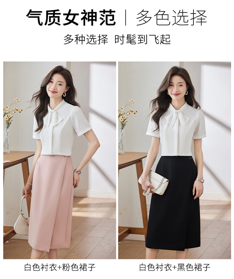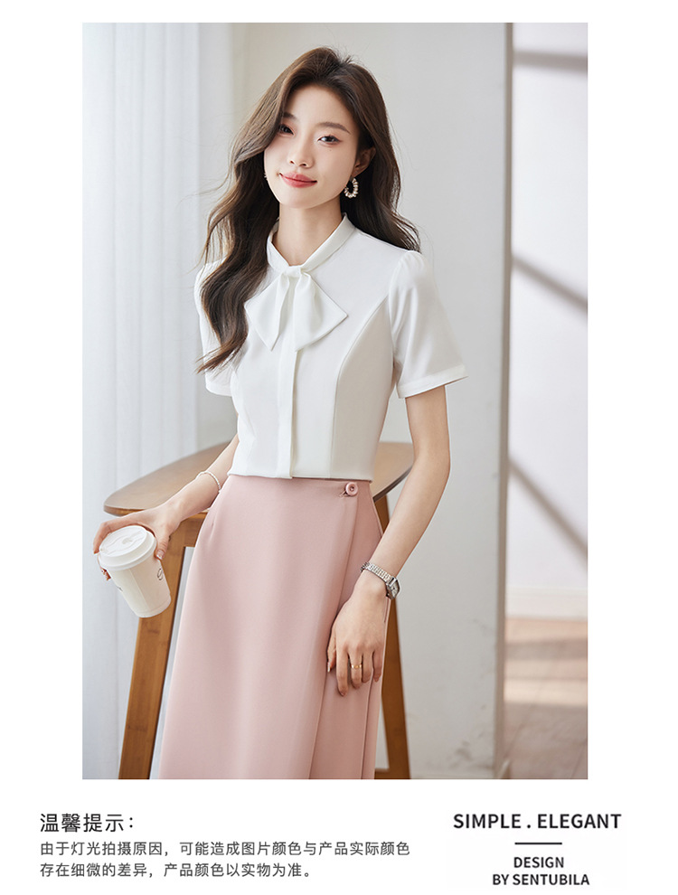 흰색 전문 짧은 소매 셔츠 여성 여름 얇은 활 쉬폰 탑 프론트 데스크 작업 옷 셔츠 세트