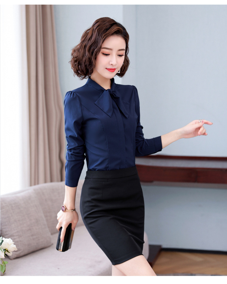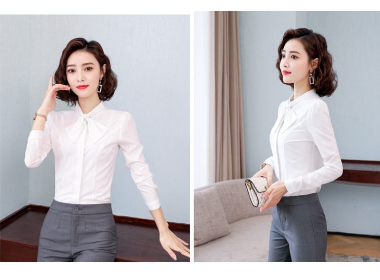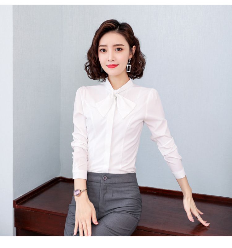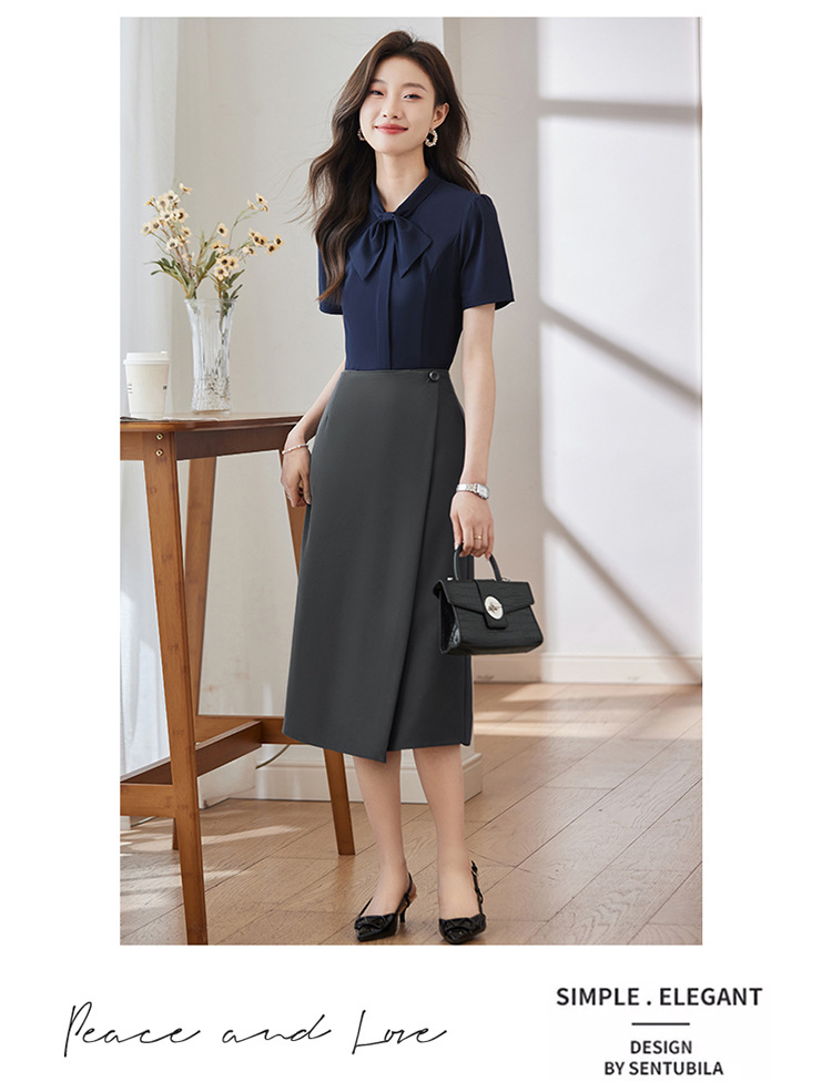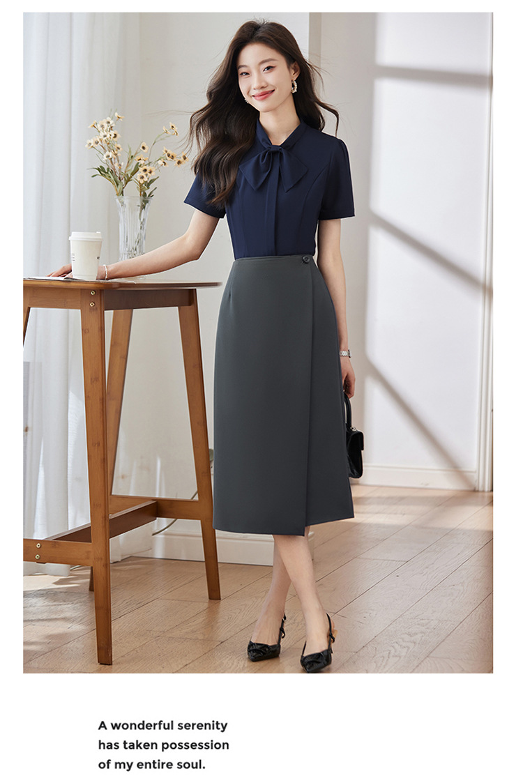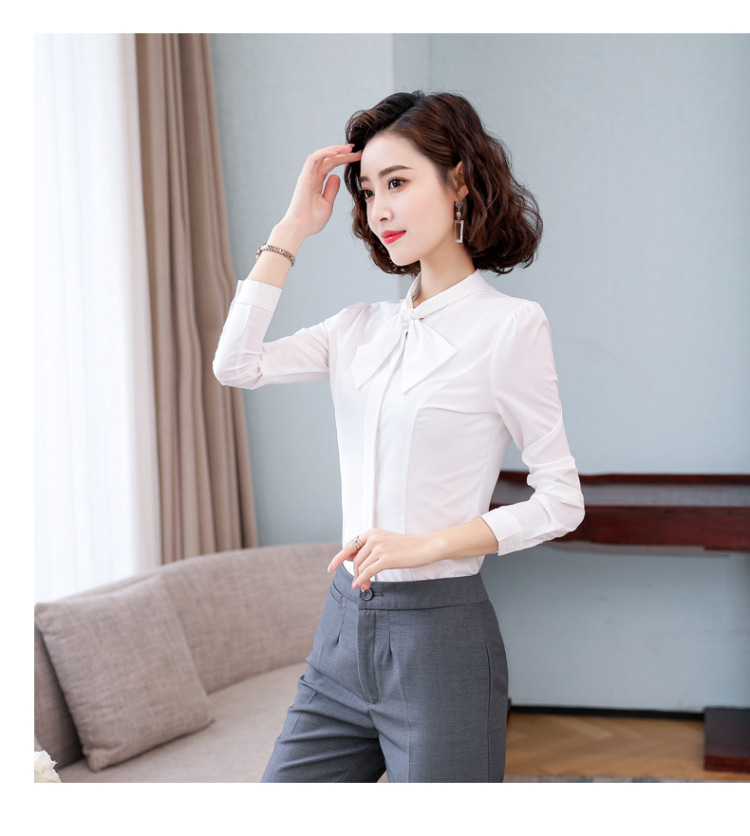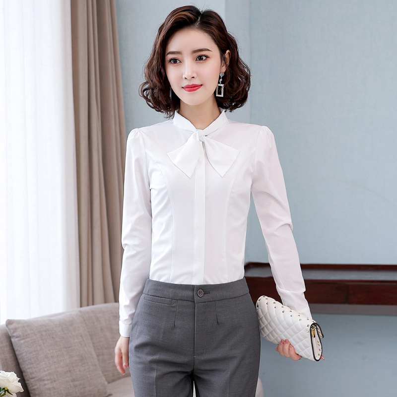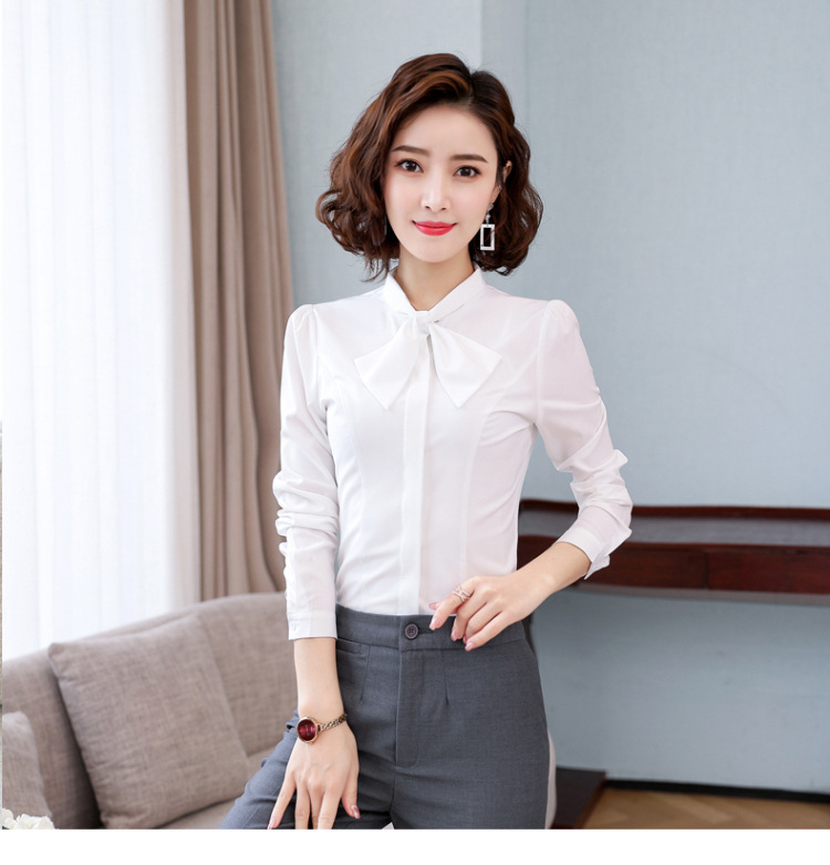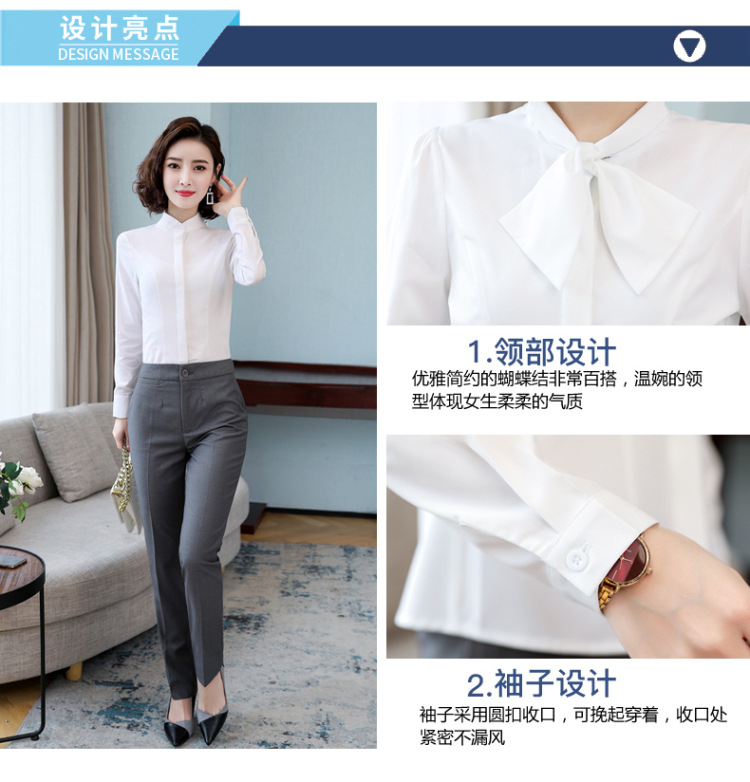 흰색 전문 짧은 소매 셔츠 여성 여름 얇은 활 쉬폰 탑 프론트 데스크 작업 옷 셔츠 세트